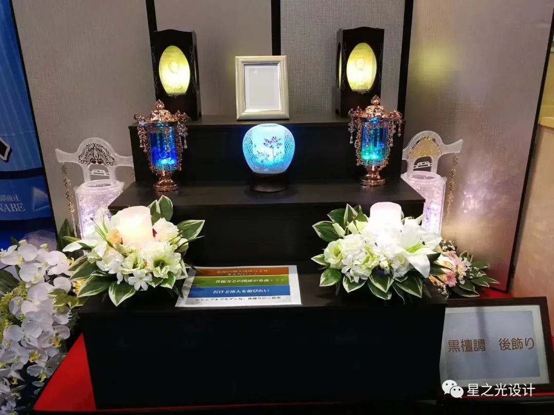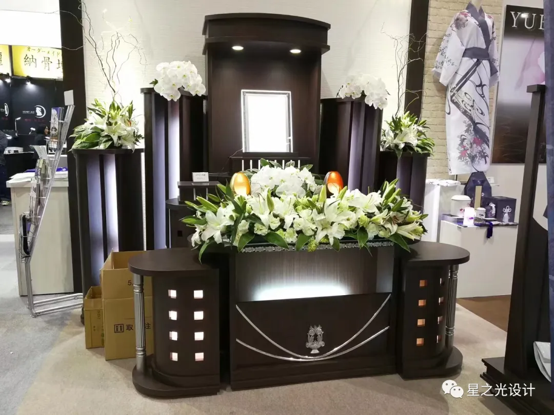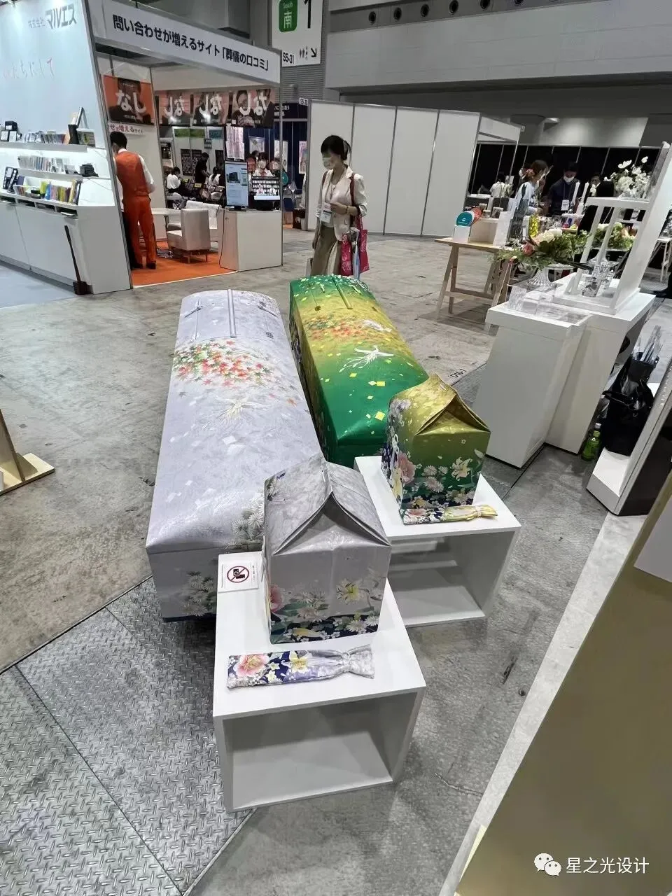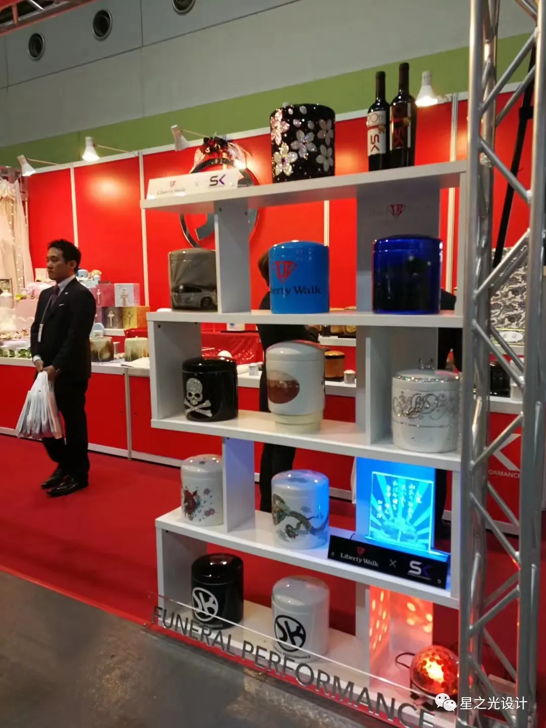 以上是2016年东京殡葬展(我还是按照习惯这么称呼吧)上的展品。和中国殡葬设备用品展上的产品相比较,其面向未来的方向感和非殡葬感风格令我大吃一惊。我开始用微信朋友圈等方法积极向国内的同仁们推荐,引起了大家的注意。