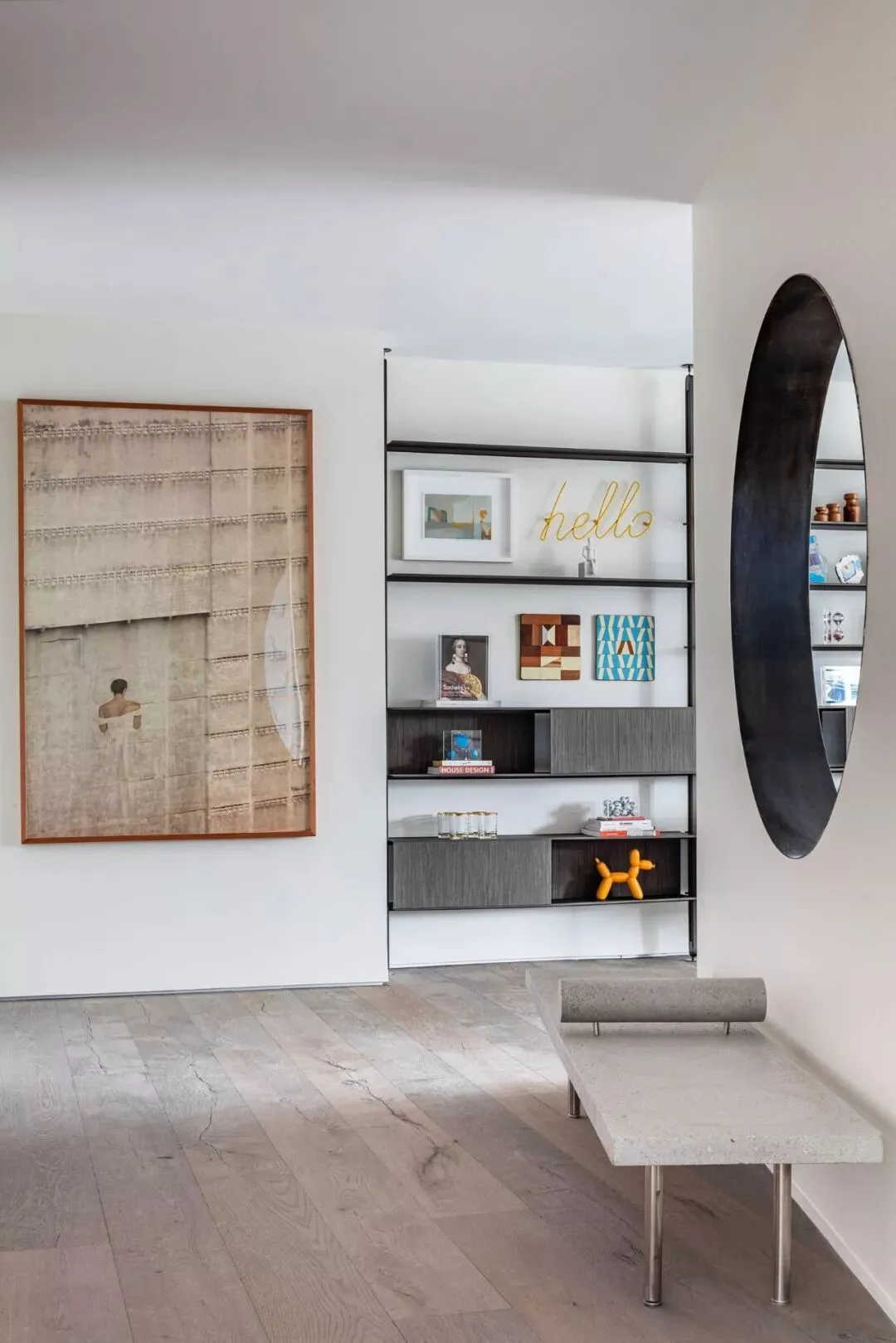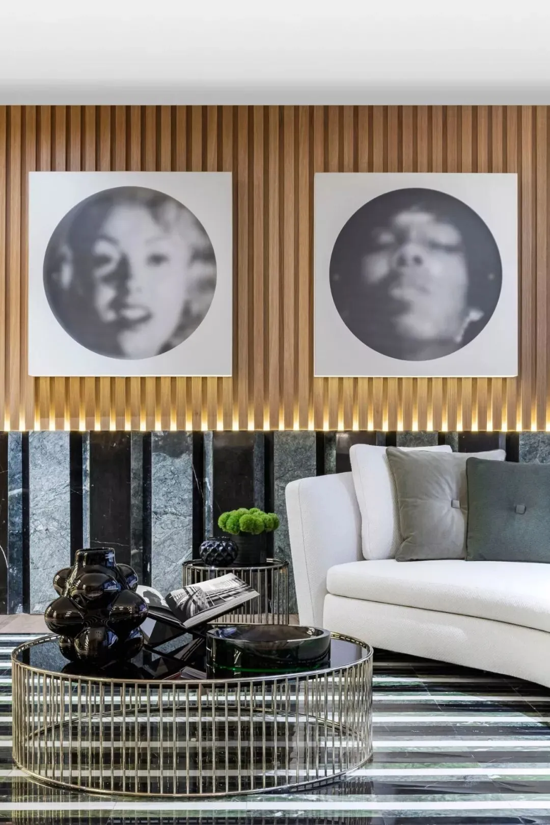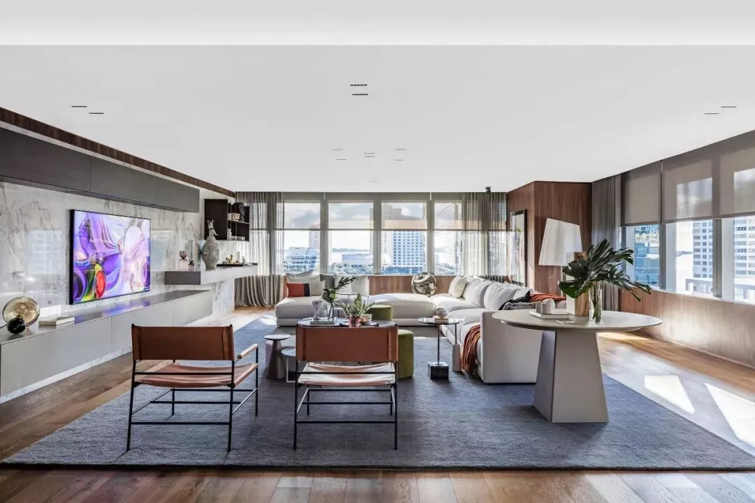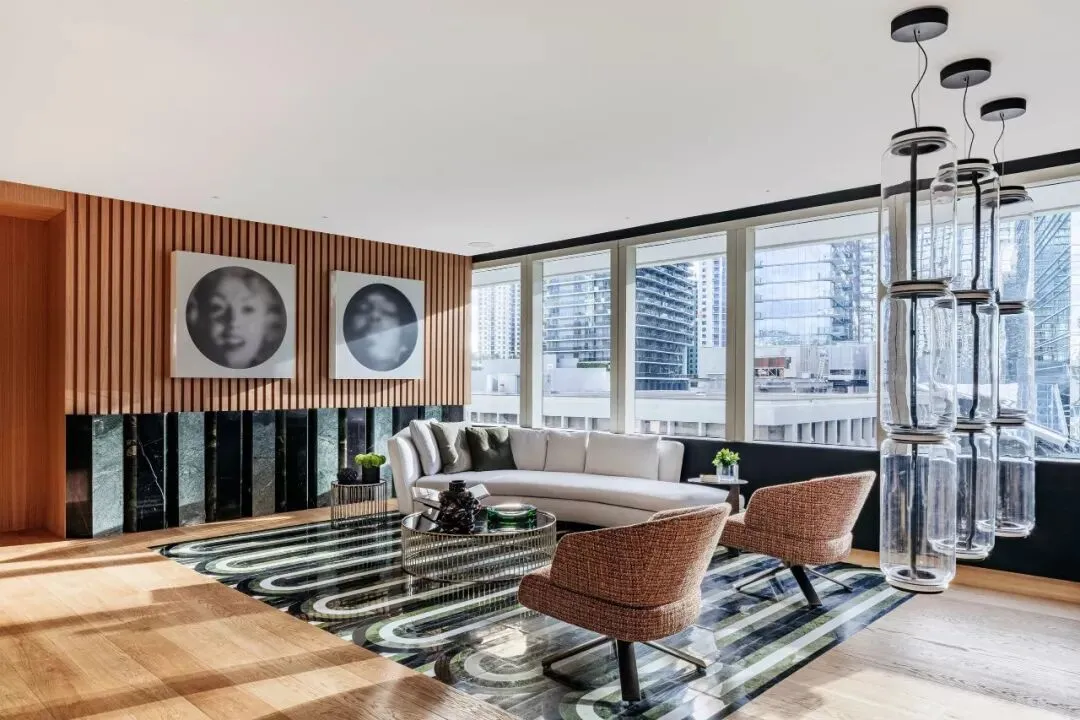 Christiana 是工作室 In Plus Inc. 的负责人,其内饰以现代风格为主,融入了对历史元素的独特解构。来自佛罗里达的设计师夫妇 Brett Sugerman 和 Gisele Laure于 2006 年创立他们的工作室。不仅接手商业地产项目,同时还在设计、生产家具和灯具。以蝴蝶和叶片为素材制成的墙纸铺满墙面,与卧室的木质背景墙形成过渡,营造统一的奢华质感。
