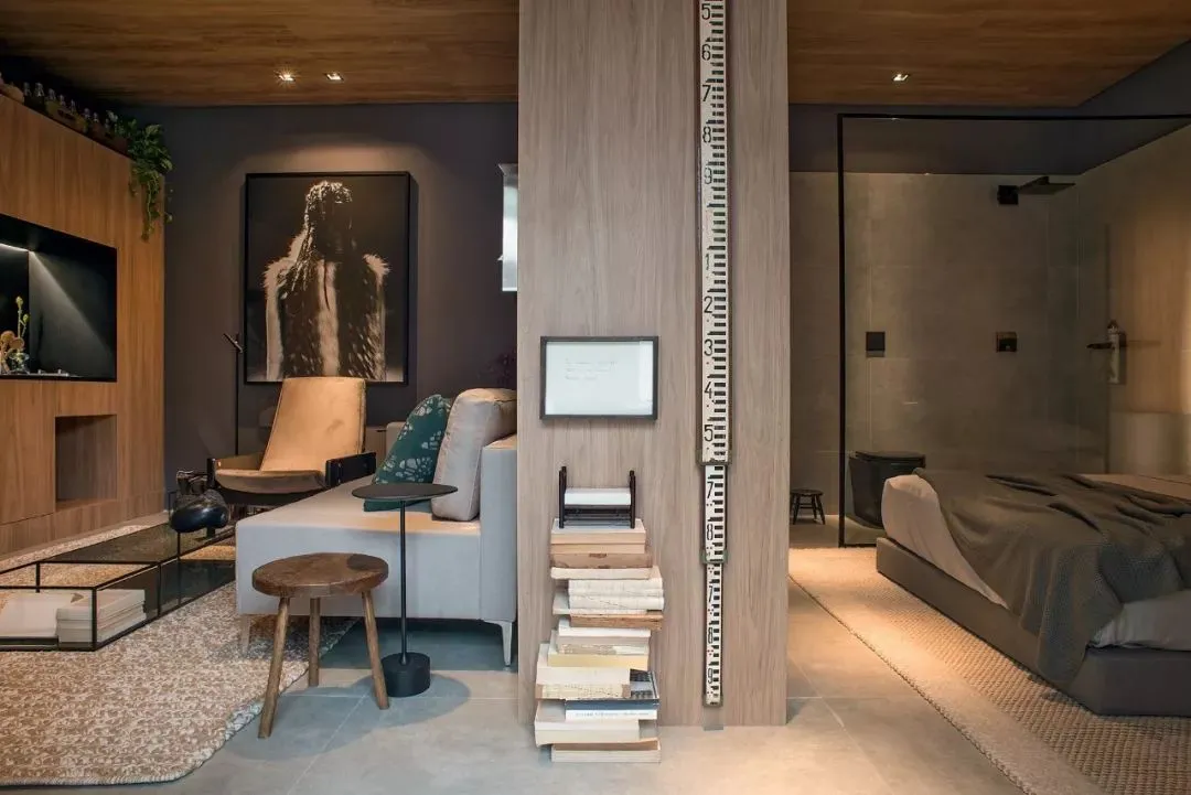 使自然光能够在充满异国情调的 Nacarado 大理石墙上留下斑驳光影 ▽Shehtman 在作品的选材方面从不拘泥传统。他让混凝土质地的 PormadeDécor 墙纸与花岗岩台盆的纯粹质地相呼应,干净而内敛。开放的布局藉由几组家具划分客厅和卧室,秉承简约的现代主义理念。一系列精选家具(其中大部分由“ Dunelli”提供)产生了古典与现代之间的明晰张力。CASACOR SãoPaulo 展会共展出了 75个项目,样板房设计涵盖阁楼,客厅,卧室,套房,浴室,工作室,花园景观等空间和功能区。△Casa Contêiner Cosentino - Marilia Pellegrini「Planeta Casa」是 2019 年展会的主题。它可以理解为「家是个人的私享世界」,其本质在整个设计装饰中都得以复制。在展会上展示的十多栋样板房中,都洋溢着舒适和温暖的气氛。△极简主义家具 Cucina Pietra - Felipe Hess△Loft Fetiche - Ricardo Abreu△ Casa Sumê | Espaço Conectado LG - Gustavo Neves△Linie Lounge - Patrícia Hagobian这种装饰唤起了人们的情感记忆,充满创意的色彩搭配和几何元素也能够唤起人们童年时代的美好梦境。△ Terraço Aurora - BC Arquitetura△模块样板房 Módulo 8.2 - Studio Costa+Azevedo△商业空间 Lounge dos Aromas - Sharon Fliter△景观阳台 Varanda Palm Springs - Jean de Just.△客厅 Sala Íntima - Paulo Azevedo△工作室 Galpão do Arquiteto - Mauricio Queiroz景观设计更加注重环境可持续性,融合了文化、艺术的经典符号。