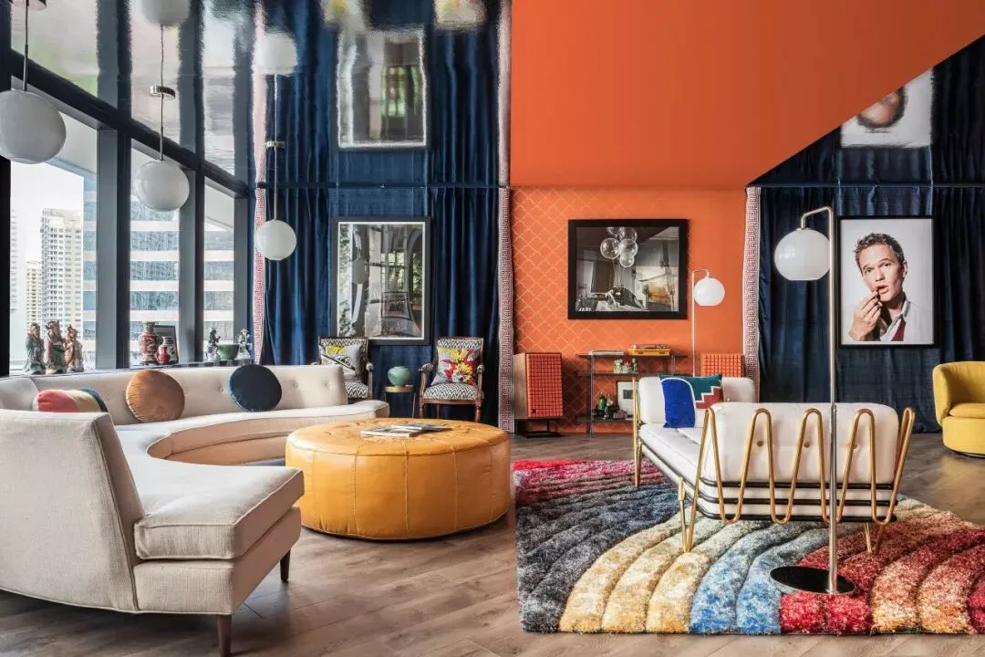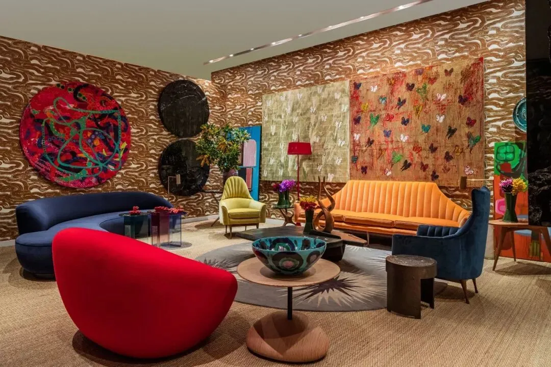 △ Casa Dendê Duratex - Nildo José△The Amalgam - Tamara Feldman DesignCASACOR迈阿密展区聚集了 19 组国际知名工作室和新兴设计师、艺术家,整个展览涉及极简主义,经验主义,和创新的概念性空间设计方法。这位年轻的古巴设计师创立了以自己名字命名的工作室 Mr. Alex Tate Design ,在迈阿密、华盛顿和洛杉矶都有开设业务。他以最喜欢的两位导演昆汀·塔伦蒂诺(Quentin Tarantino)和斯坦利·库布里克(Stanley Kubrick)为灵感,用金色、黄色、橙色混合铂金、红色和深蓝色的色调来创作明亮的空间。Tarantino Meets Kubrick - Mr. Alex Tate Design ▽他把这种中和了复古和当代奢侈视觉享受的风格定义为「现代维多利亚」。他们是巴西最著名的的室内工作室之一,拥有40多年设计经验,以激烈的色彩和大胆的印花样式碰撞出一幅幅生动的巴西艺术品,极具辨识度。