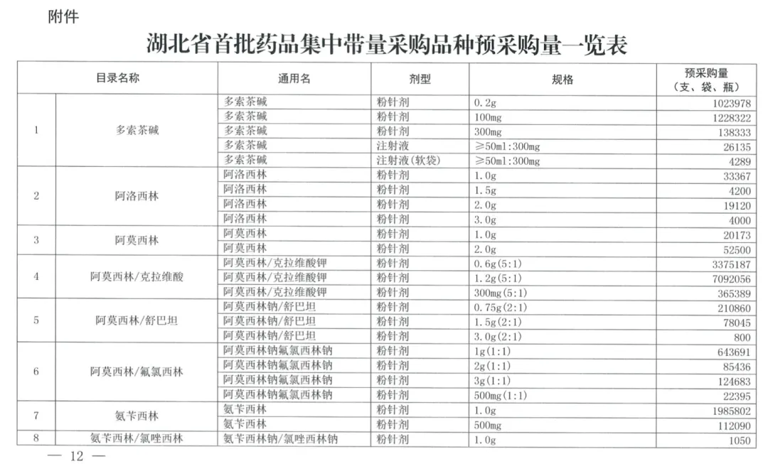 值得注意的是,11月13日,湖北省医保局曾发布《关于开展湖北省首批药品集中带量采购工作的通知》,正式披露湖北首次集采的品种——涉及多索茶碱、氟氧沙星、环丙沙星、加替沙星、左氧氟沙星、阿莫西林、替卡西林等在内的33个药品。