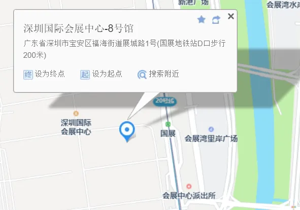 12号线/20号线国展站C1/C2口,国展北站D口,直达深圳国际会展中心。