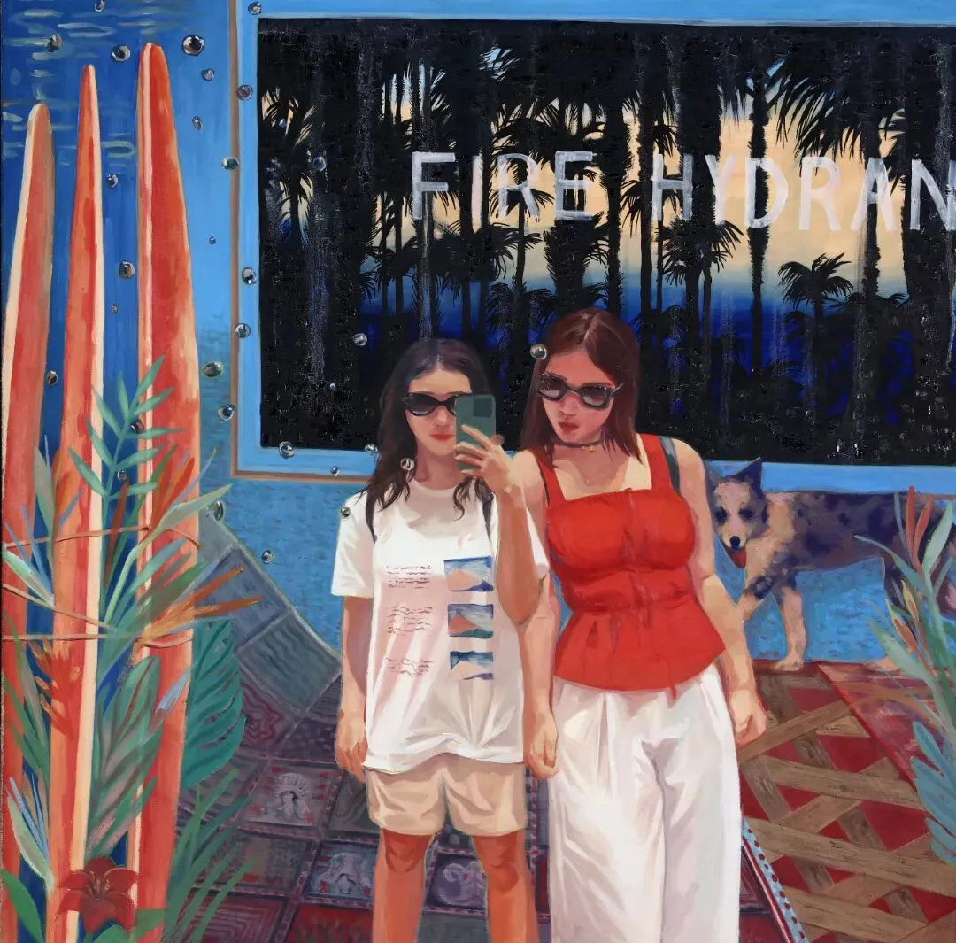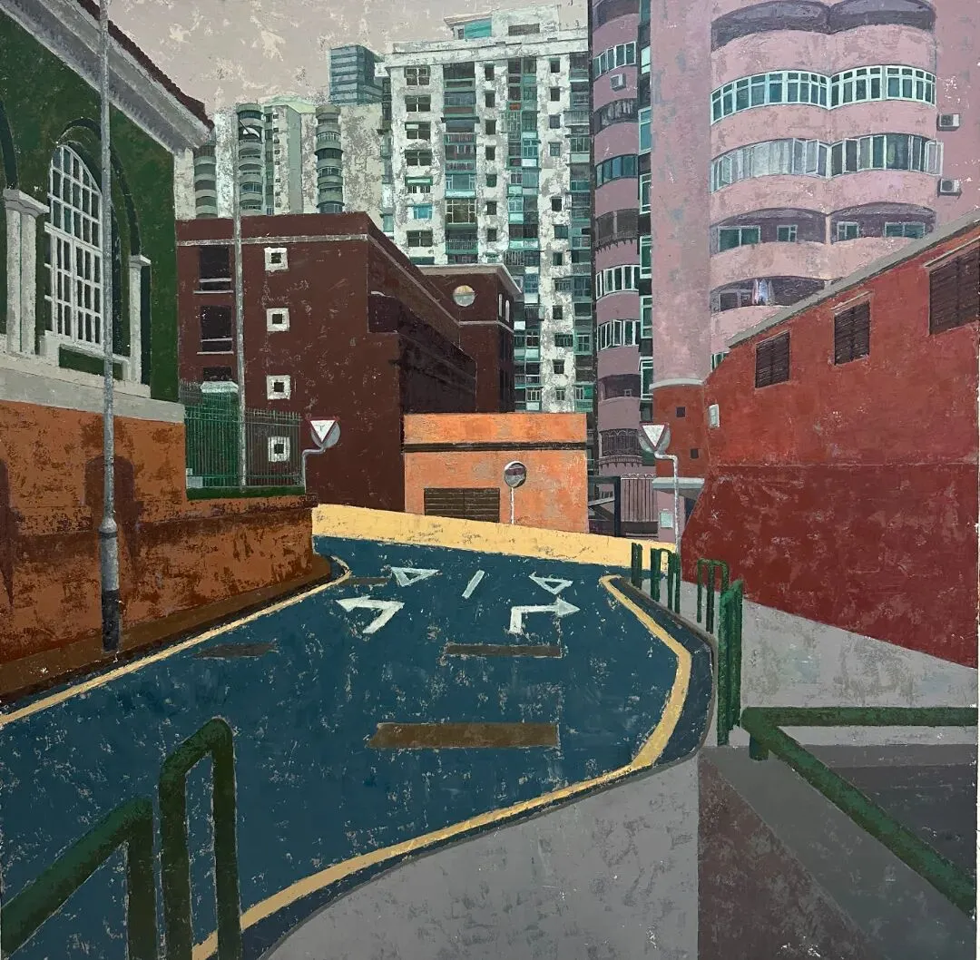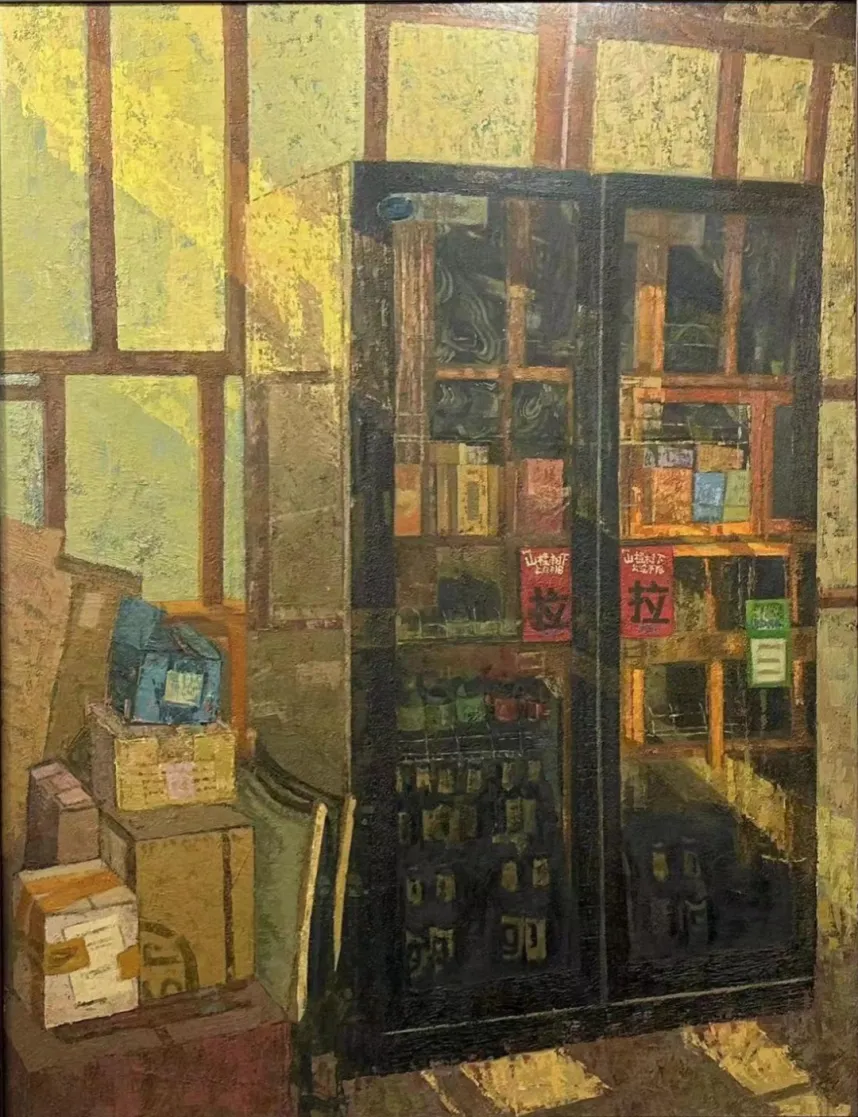 在《平面之镜》系列作品中,本人试图捕捉具有表现力的都市元素,对于映入眼帘的三维立体景象,经过主观的加工和提炼,将它们转化为平面的艺术形象并映现于画布之中,使扁平化的艺术形式成为对真实景象的独特演绎。笔者无意间被落日余晖照亮的自动贩卖机所吸引,仿佛整个世界都为之静止,享受在这难得的宁静时刻,并以平面化的形式将这惬意的美好瞬间实现具象化。