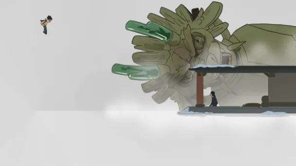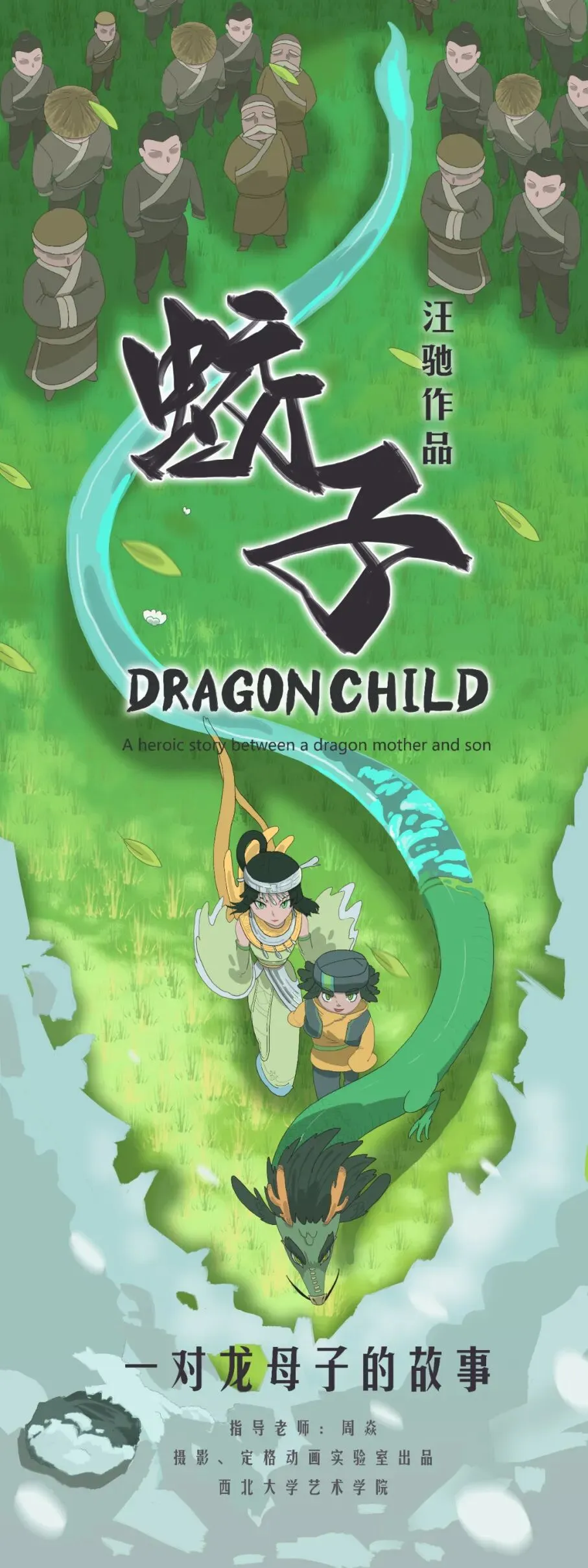 二维动画《蛟子》根据民间龙母故事改编,讲述龙母与龙子破阻反抗贪婪的地主,同时龙子认同自己身份的故事。本动画采用二维逐帧的创作手法,塑造了一个有趣的民间故事。故事发生在一个南方山村,破旧的神像、嚣张的打手、贪婪的地主皆显示着百姓被欺压的事实。从不下雪的山上下起了大雪,龙母和龙子拾柴下山遇到了欺压百姓的地主手下,故事在大雪纷飞的村落中展开。