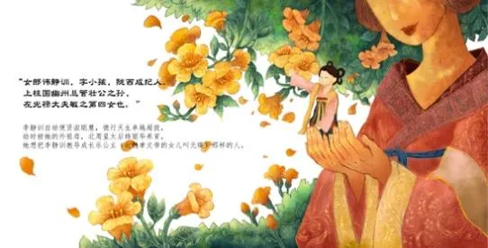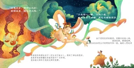 《寻忆之旅》通过第三人称视角来讲述绘本的故事,每个人都可以作为回忆之旅的体验者,从而更好的理解其历史文化故事和传递的情感。故事中出现的角色,选自李静训石棺画像以及随葬器物的形象,个别选用了佛教洞窟的飞天、佛祖等形象。故事分为“人间芳华、往生之路、温暖梦境、泡幻梦醒”四个场景,围绕李静训生前到死后的世界进行编写,故事脚本中融入了李静训墓志铭原文,让读者们在阅读时潜移默化的了解文物和历史文化知识。