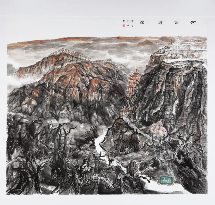本人毕业设计以中国画写意山水的形式来表达我对西北地区的游经印象。将本人游经西北地区实地拍摄的照片进行整理,挑选素材作为参考。尝试打破常规构图,结合自己的素材分析,营造视觉效果。色彩主要以墨色和赭石为主,根据实际情况增减颜色。运用写意的手法描绘整个画面,其中山川树木运用勾线、皴擦和点染等手法。总之,西北地区历史悠久,文化底蕴深厚,这里的一切深深吸引了我,激发了我的创作热情。
