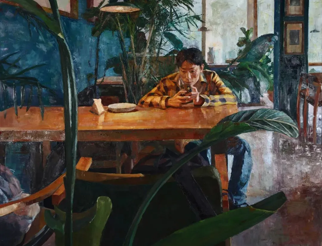 作品采用180*140cm大小的布面油画框,采用横构图的形式,以写实的手法描绘了午后惬意的闲暇时光,充分借鉴了印象派以及现当代画家的艺术作品,作品以室内为主要背景,以暖色调为基本色调,在创作时,我将人物置于主体,用冷色调餐厅当做背景,对人物及其衣着采用了暖黄色调的处理,人物选用自己朝夕相处的同学作为画面的主要部分,对人物进行细腻的描绘,画面具有构成感,色彩对比强烈,刻画充分。