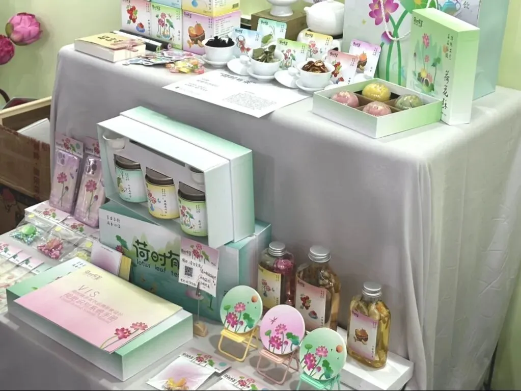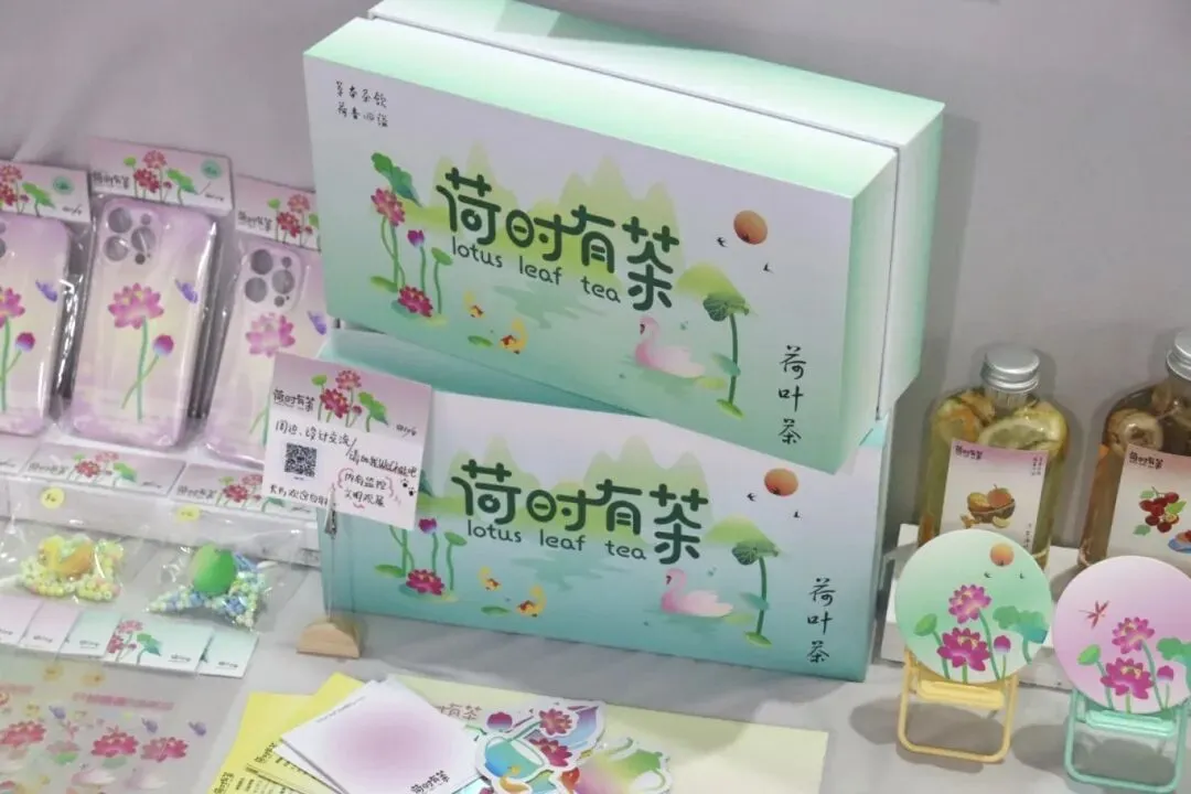 该设计选取湖北黄梅县荷叶茶为调研对象,“荷时有茶”为荷叶茶茶饮包装设计,以20-40岁女性为主要目标群体。包装基于湖北黄梅县荷叶茶,通过扁平化的设计风格进行系列化包装的呈现,简洁鲜明的展示不同口味的荷叶茶和酥点包装。“荷时”通“何时”,想借此表达在快节奏的生活模式下,任何时间都可以给自己留一杯茶的时间放松片刻,建立起传统茶饮与年轻群体之间的联系,达到传播黄梅县荷叶茶的目的。