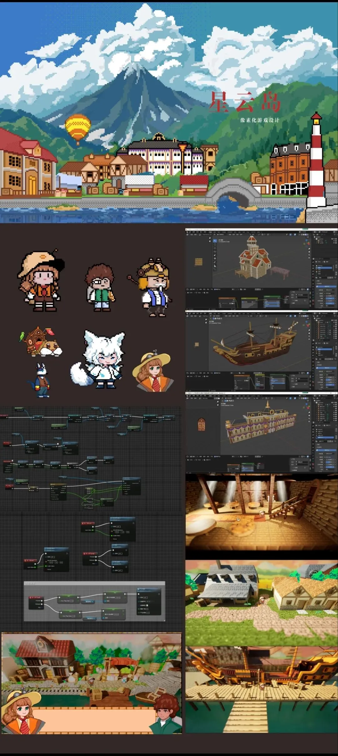 《星云岛》使用UE5引擎设计开发。采用3D场景+像素角色+2D人物立绘的美术风格,《星云岛》是建立在一个架空世界观下的,即“海间大陆”。构建这个世界观时也大量借鉴了现实世界的概念。