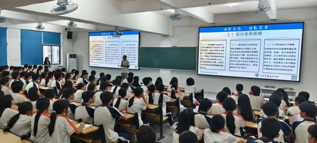 为普及徽标与吉祥物的设计理念,提升同学们的创作能力,9月26日与9月29日,我校分别在南校区和东校区开展体育文化节徽标、吉祥物设计讲座,由李慕校长助理、徐晓璇老师主讲。讲座面向高一、高二年级各班代表、全体美术生、团学组织及社团代表,共有500余人参与,现场学习交流气氛热烈。