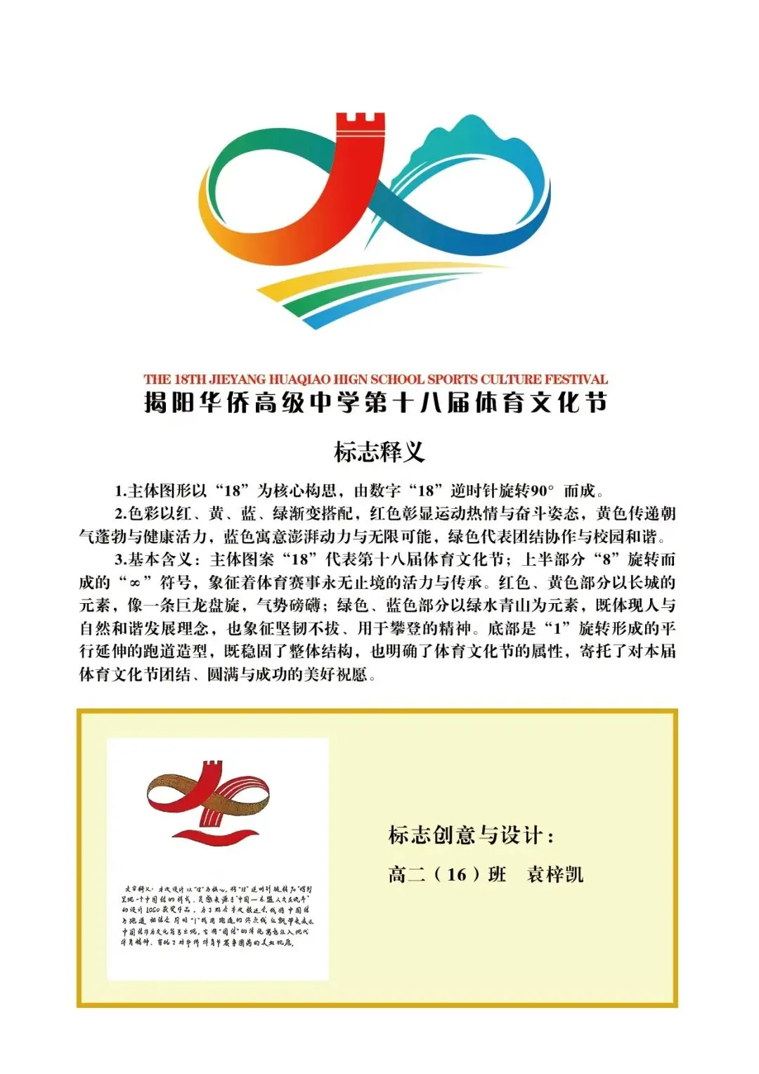 为做好第十八届体育文化节前期筹备工作,营造浓厚氛围,繁荣校园文化,我校第十八届体育文化节组委会特开展徽标、吉祥物、主题及口号征集活动。