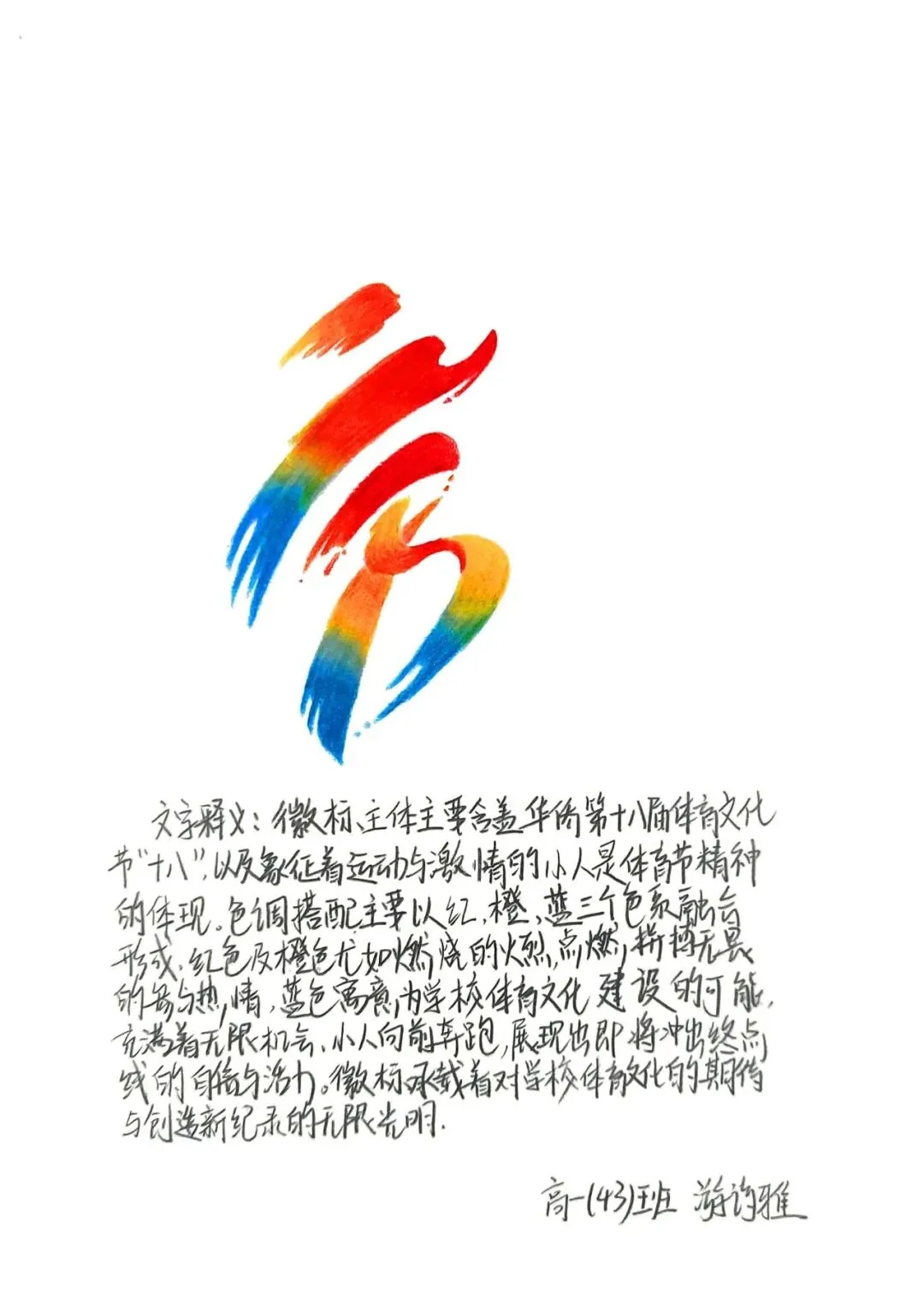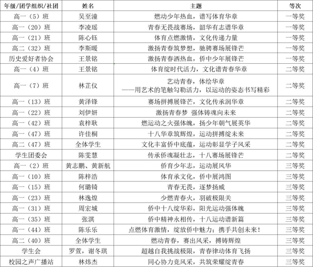 本次活动涌现出众多大胆创新、设计精良的作品,彰显了我校学生勇于创新、精诚协作的精神风貌。通过本次活动,我校学生的美感感知、审美素养与美术创造力得到显著提升,全体师生对第十八届体育文化节满怀期待、热情高涨,为活动的顺利举办筑牢了氛围基础。