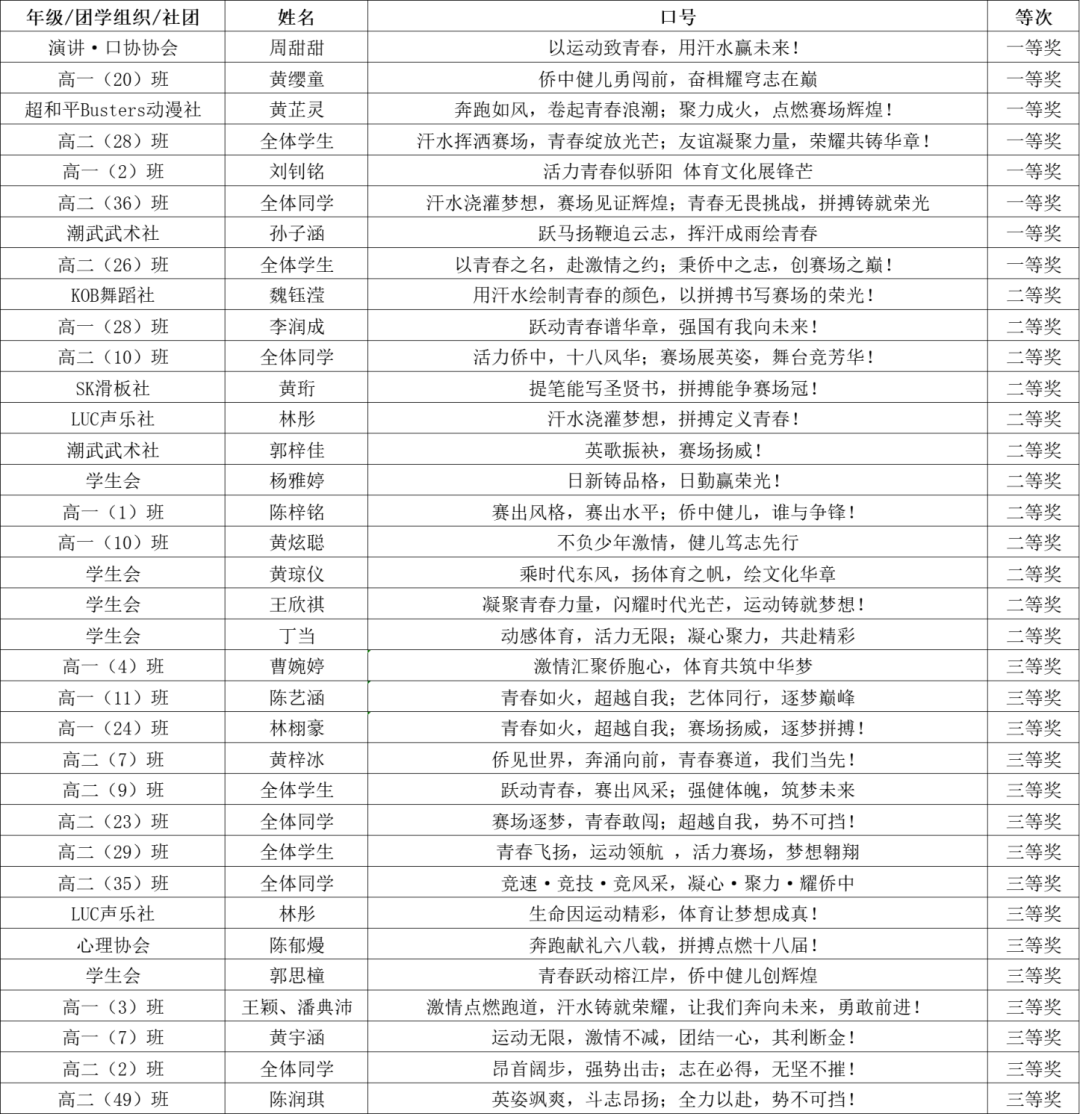 口号征集活动获奖名单