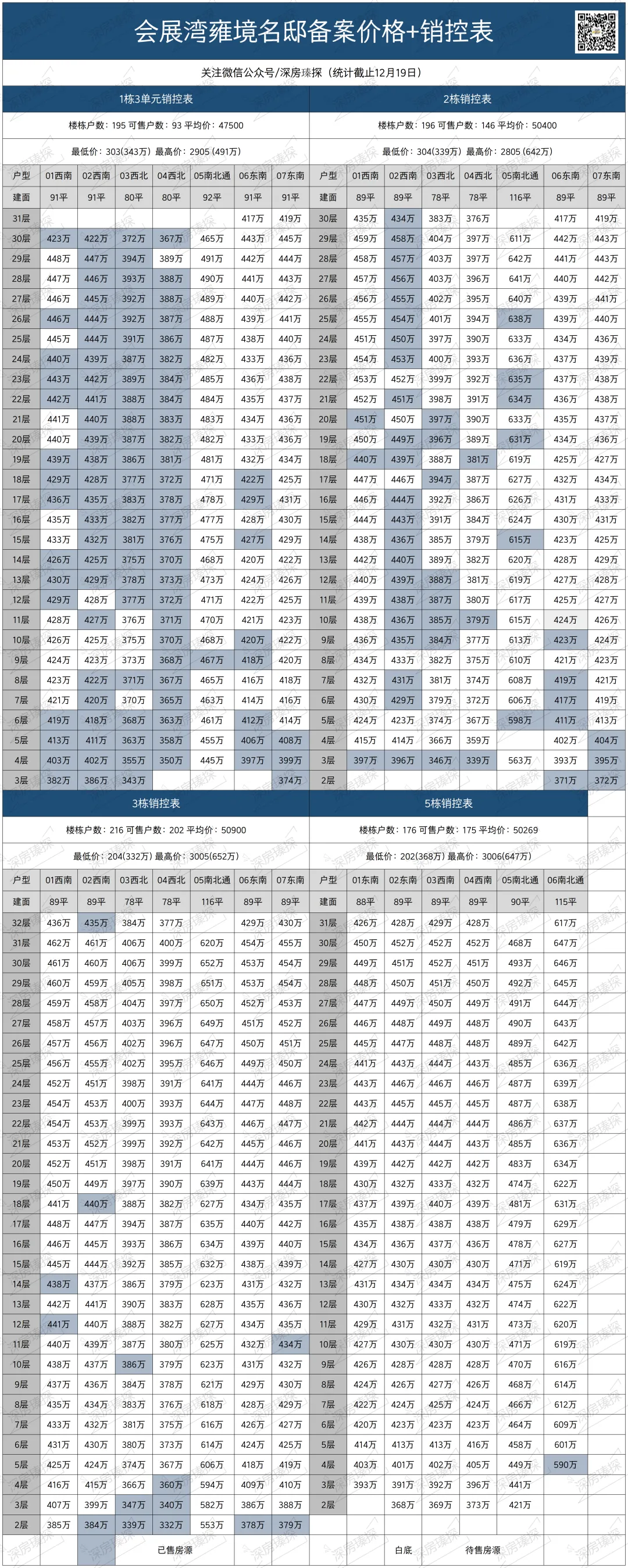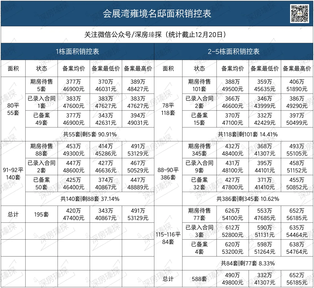下面罗sir还特意做了份招商会展湾雍境名邸全套的备案价格+销控表,可以作为参考,如果需要具体的折后价格表以及后期最新的销控表,都可以加微信联系罗sir。