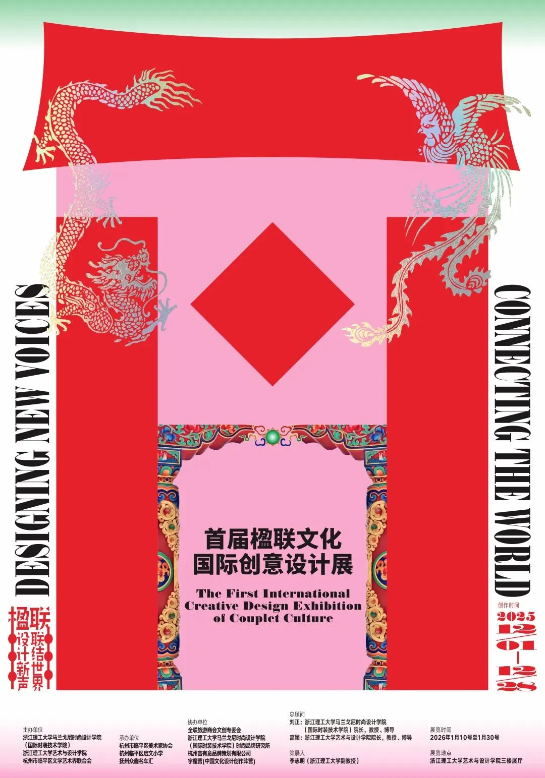 时代奔流,万象更新。当古老的格律遇见当代的设计,必将激荡出全新的文化能量。本次“首届楹联文化国际创意设计展”,正是一次跨越时空的对话。我们旨在溯源千年文脉,广纳四海创意,让楹联从传统的门楣上走下,融入现代生活的每一个角落。我们不仅追寻春节时“千门万户曈曈日”的喜庆红火,也探寻人生中所有值得铭刻的瞬间——新生的喜悦、成长的贺彩、团圆的温馨、成功的志庆。我们邀请全球设计师与艺术家,以楹联为基因,以创意为笔触,共同回答一个问题:在今日世界,楹联可以是什么?它可以是墙上一幅极简的海报,可以是手中一件温润的器物,也可以是屏幕上一次交互的奇旅。在此,我们让设计为楹联赋能,让楹联为生活点睛。
