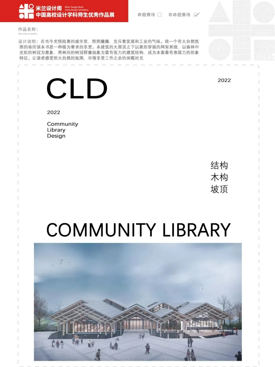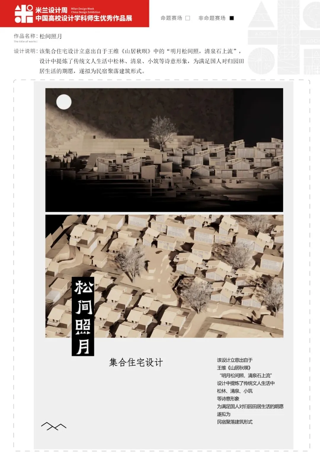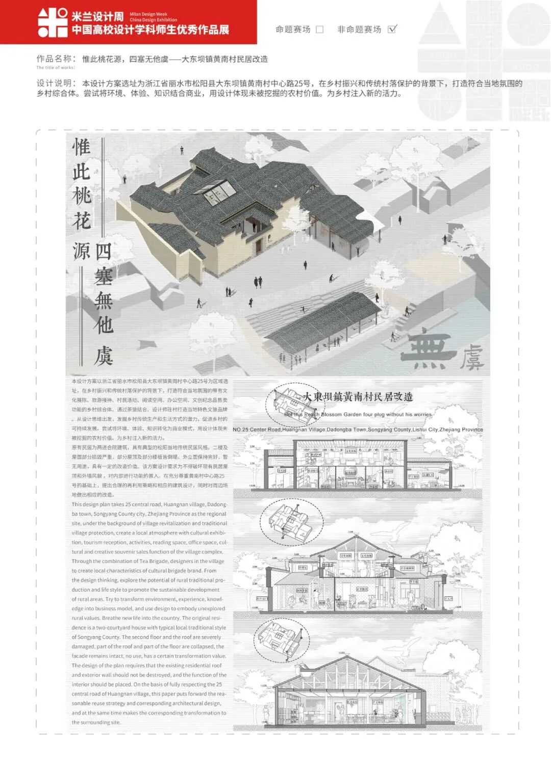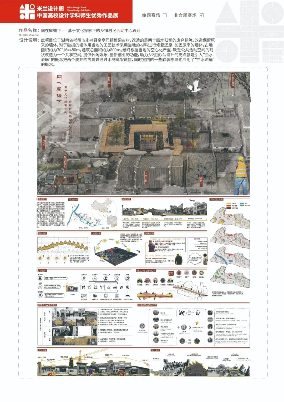 作品名称:《同在屋檐下——基于文化探索下的乡镇村民活动中心设计》