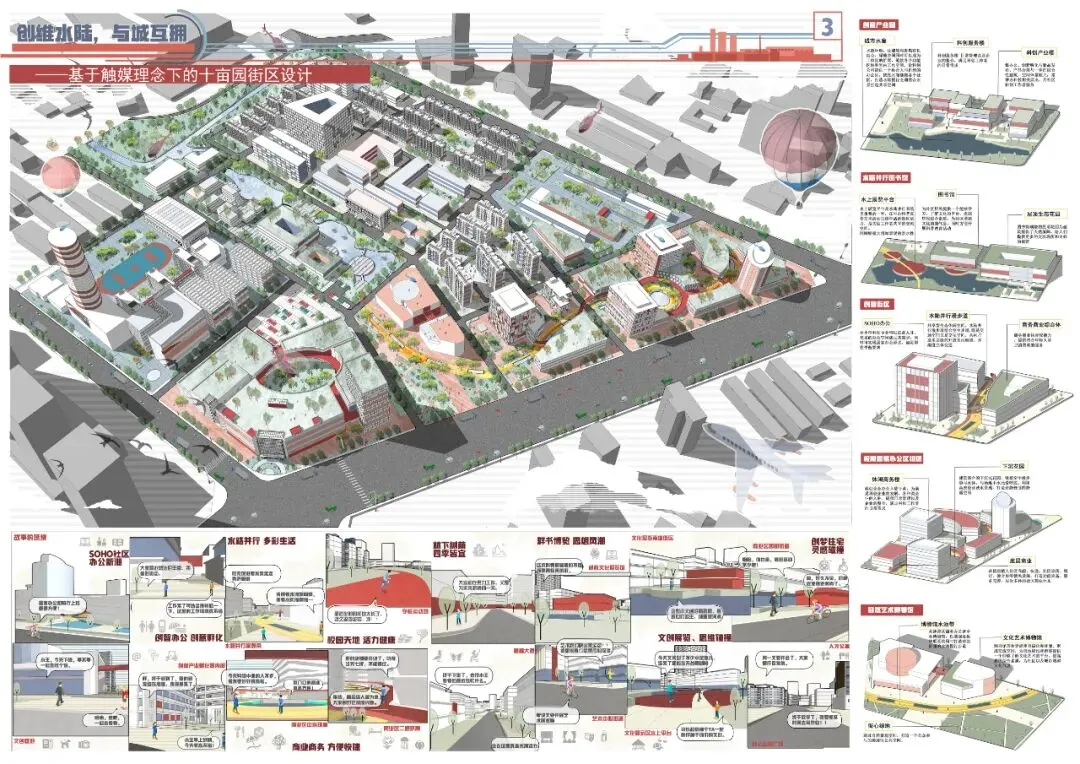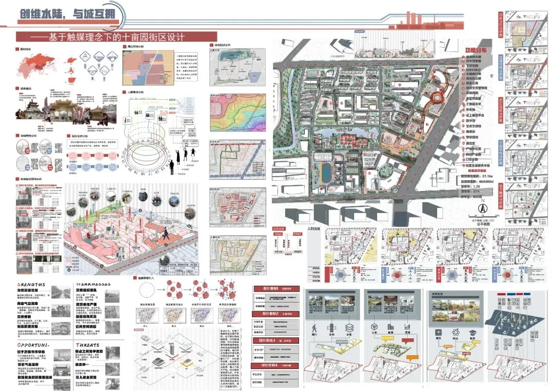 作品名称:《创维水陆 与城互拥——基于触媒理论下的十亩园街区设计》