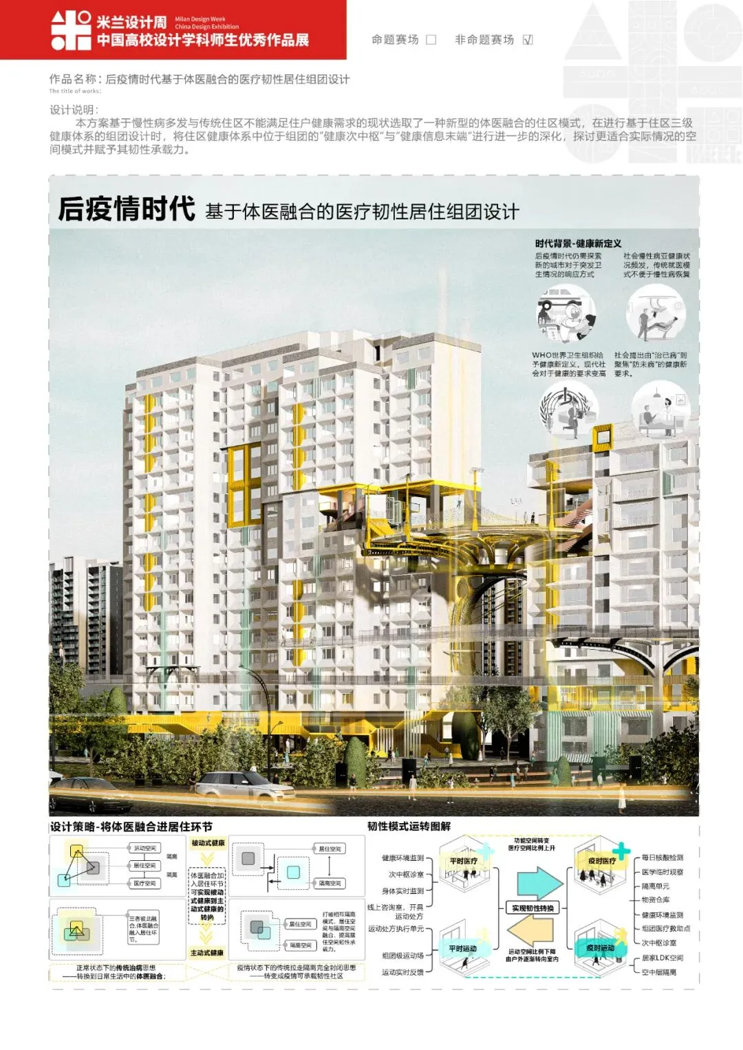 作品名称:《后疫情时代基于体医融合的医疗韧性居住组团设计》