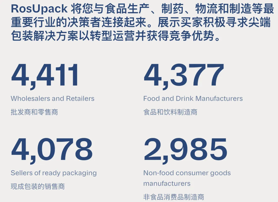RosUPack是俄罗斯及独联地区最大的包装相关设备和材料展览会。始办1996年,也是全球著名的包装展览会之一。已经用自身的成绩赢得了良好的国际声誉,每年都吸引数以万计来自俄罗斯以及世界各地的包装行业专业人士参展、观展,现已成为地区和世界各国专业人士相聚莫斯科共商合作的年度盛会。