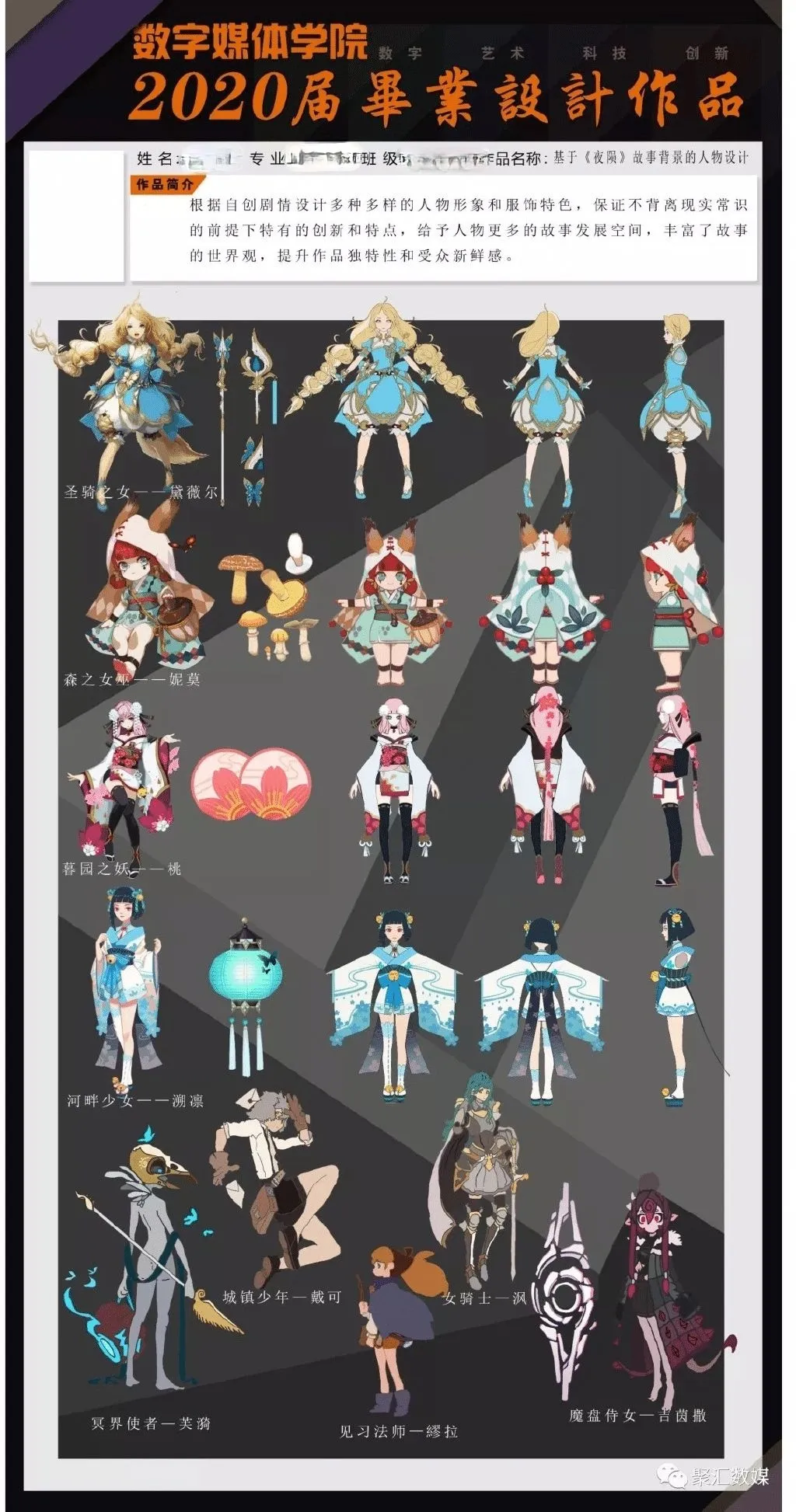 · 03 辽宁传媒学院-数字媒体学院:游戏人设 ·可能是阴阳师的人设和美术真的太火,拿它来抄的人简直可以组成一个连。博主阴阳师万事屋在微博上祭出了某院校数字媒体学院的2020毕业人设设定造型图,开启了吐槽。