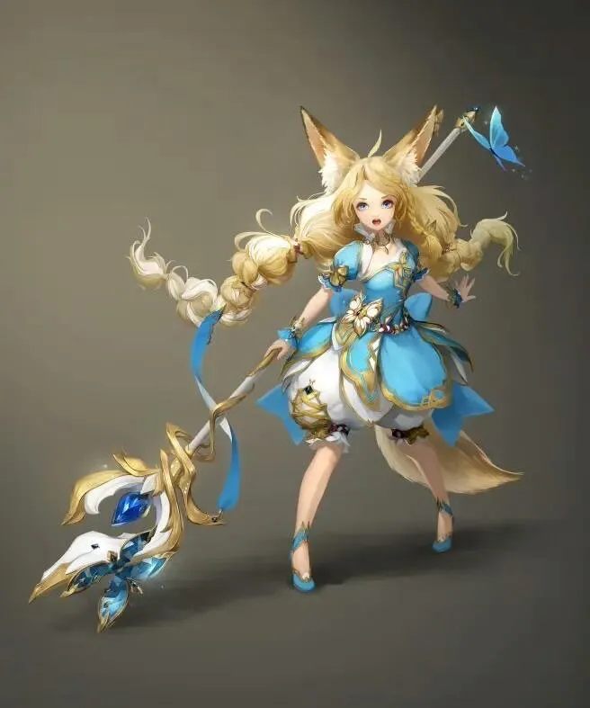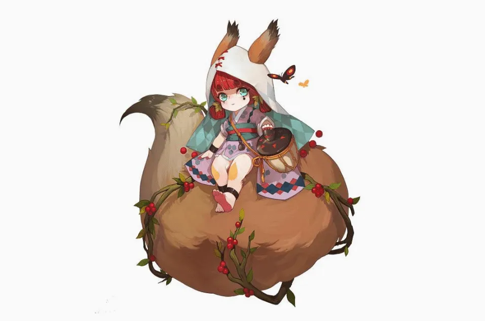 整个人设都透露出一股浓浓的《阴阳师》既视感。妮莫直接照搬小松丸一点不改,其他人设大概是桃花妖不知火青行灯的各种缝合怪,能抄的造型差不多抄了个遍!第一行的人设黛薇尔被直接扒出了照搬韩国画师Liz Son的作品。行,这个同学起码搜了好大一波资料,多少花了点工夫。