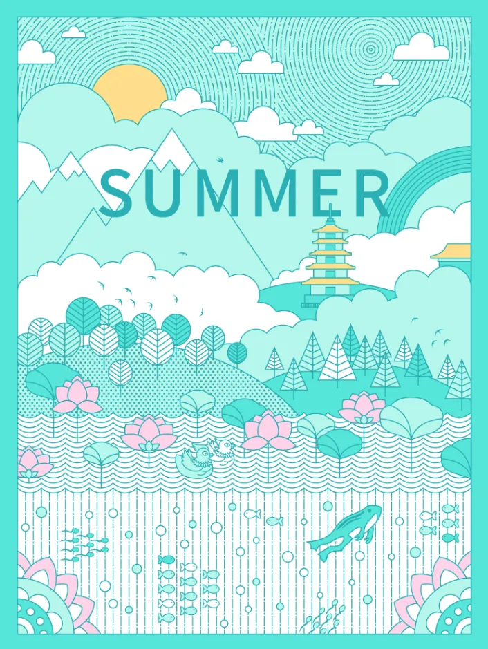 问题出在中国美术学院公众号发布的“夏至”主题海报上。虽然不是毕设作品,但是抄袭就是抄袭。这个海报也是采用了完全的复制粘贴的形式,除了改了一下调色加了夏至主题之外,基本和原版没什么区别。