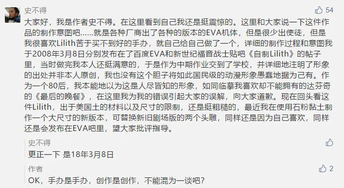 正主也在“抄袭的艺术”的留言区回应,表示这个作品他没有标示原创,那么如何评判还是留给大家吧。