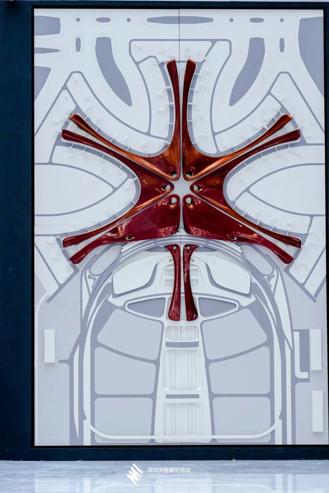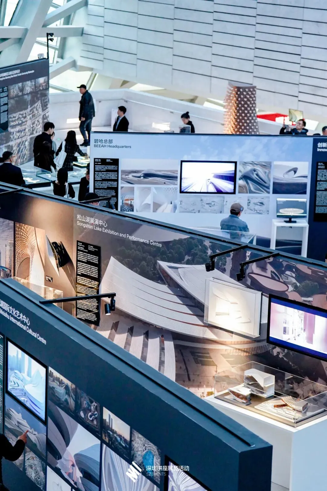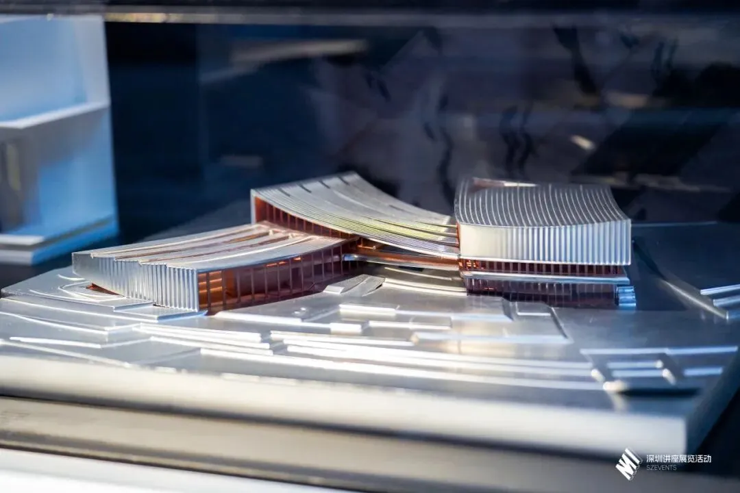 东莞松山湖展演中心(2022,建设中),图为展览现场展出的建筑模型。