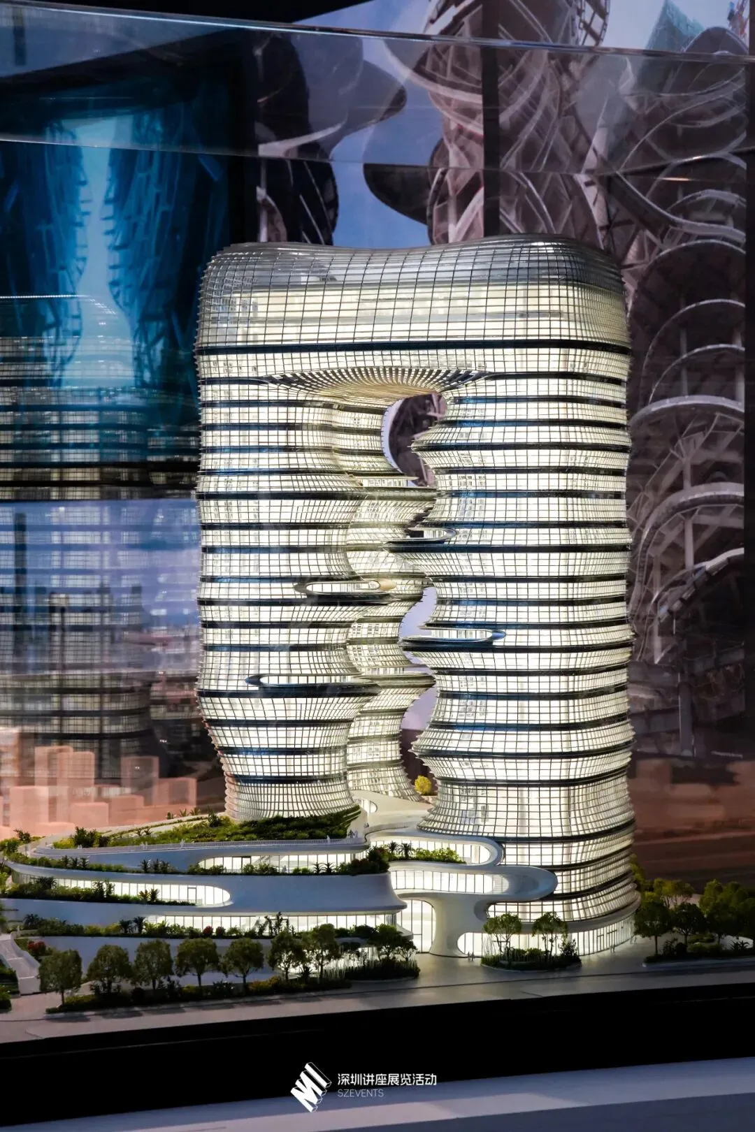 深圳一丹中心(2021,建设中),图为展览现场展出的建筑模型。