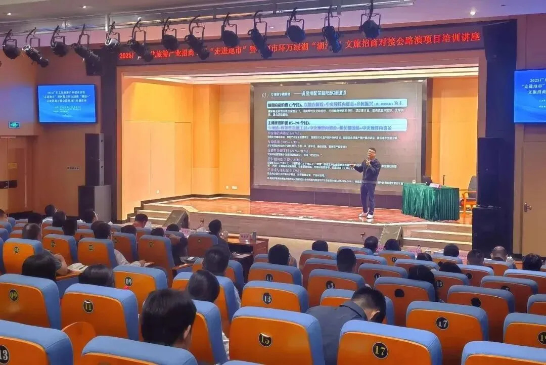 2025广东文化旅游产业招商引资“走进地市”暨河源市环万绿湖“湖泊 +”文旅招商对接会将于10月30日至31日在河源召开。作为活动的重要环节,10月21日,河源市文化广电旅游体育局联合河源市 “百千万工程” 指挥部办公室组织开展路演项目培训讲座。活动旨在全面提升河源市文旅招商项目路演推介质量,充分展现环万绿湖“湖泊 +”文旅资源特色与投资潜力。全市9个路演项目及20余个文旅特色镇(街)参加了培训。