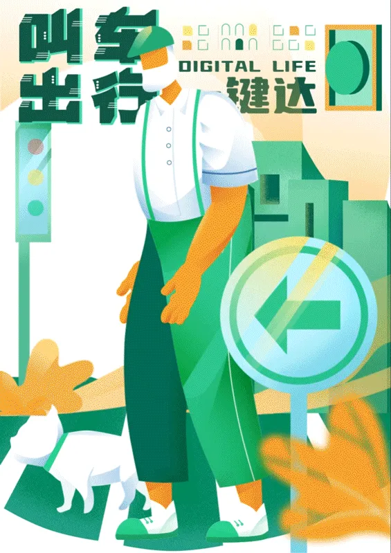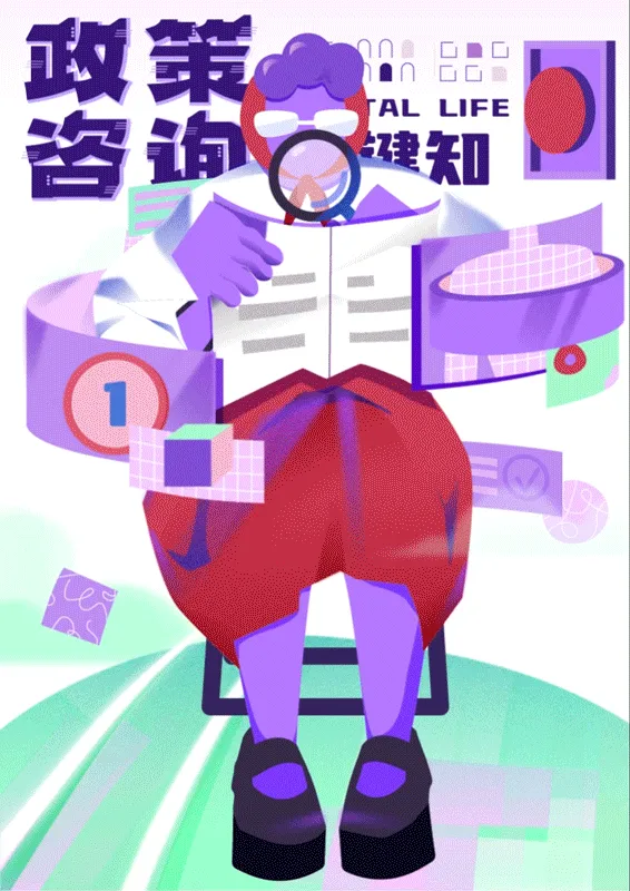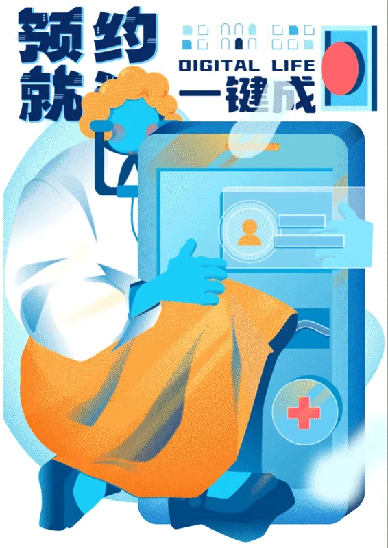 “为老服务一键通”旨在为老年人提供更好的服务。海报以叫车出行、政策咨询、预约就诊、紧急救援四个场景为主题,采用色彩跳跃的设计风格,营造轻松愉快的氛围。标语简短有力,动态形式注重信息传达的清晰度和易读性,帮助老年人更好地了解这项政策。