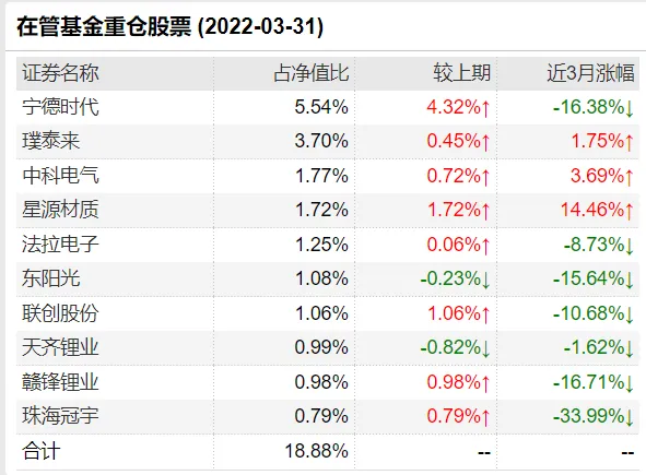 小柒在wind上查了下,到今年一季度,冯明远在管基金前十大重仓股票中,主要还是新能源题材,并没有白酒的身影: