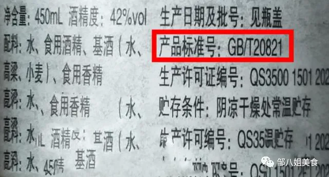 GB/T20821为液态法,意思就是瓶子里装的全是酒精酒,没有任何粮食的成分,会通过添加食用香精的特点来增加酒丰富的香味。