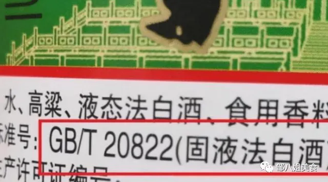 GB/T20821为液态法,意思就是瓶子里装的全是酒精酒,没有任何粮食的成分,会通过添加食用香精的特点来增加酒丰富的香味。