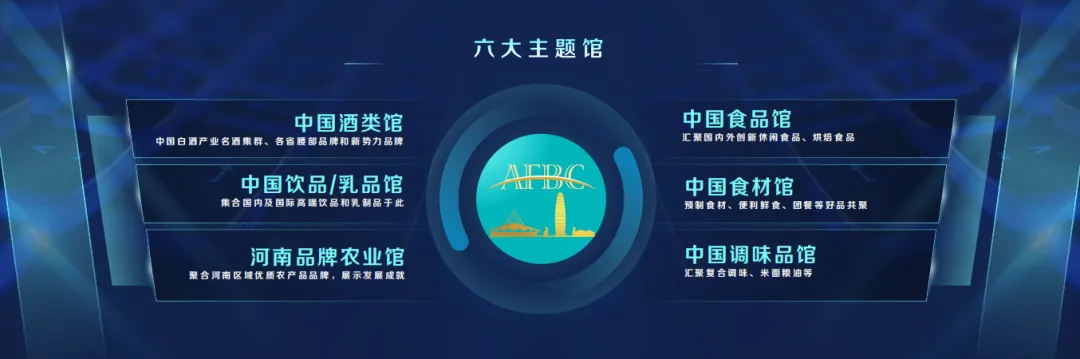 2021届万商大会规划酒类、食品、饮品/乳品、食材、调味品、河南品牌农业六大展,设置葡萄酒、烟草、进家、新消费、产业园、新疆兵团、各地展团、区域农业等八个主题区。
