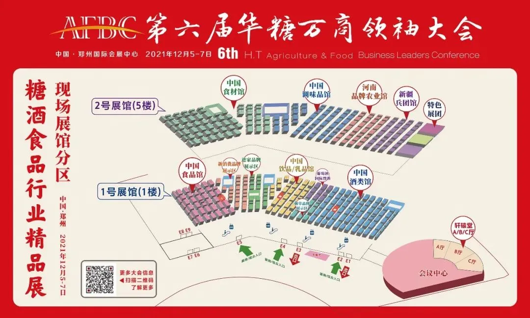 2号展馆(5楼)中国食材馆、中国味道馆、产业园区展示区、河南品牌农业馆、各地展团展示专区。