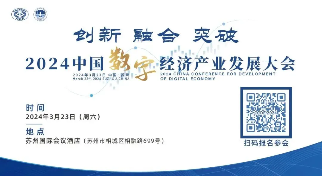 2024中国数字经济产业发展大会(CCDE 2024)将于3月23日在苏州召开,大会展位征集正在进行中!