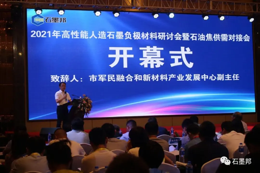 2021年7月6日,2021年高性能人造石墨负极材料研讨会暨石油焦供需对接会在葫芦岛隆重举行,会议旨在为行业中关注石油焦行业的专家、学者与产业界人士搭建一个专业的互动交流平台,围绕以石油焦技术及下游市场应用进行深度交流,探讨如何共同促进石油焦行业发展。会议由石墨邦主办,辽宁炳诚新材料有限公司、葫芦岛市连山区博越碳素制品有限公司、葫芦岛市荣达碳素有限公司、盘锦富利碳素制品有限公司、葫芦岛市铭浩新能源材料有限公司、辽宁顺隆炭素集团有限公司、淄博吉曜炭化制品有限公司、山东智谷碳素研究院有限公司协办,由布鲁克(北京)科技有限公司、中研颗精密机械(苏州)有限公司、桂林鸿程矿山设备制造有限责任公司、潍坊市精华粉体工程设备有限公司、新乡市泰勒机械设备有限公司、朝阳光大振动机械有限公司赞助。来自全国近200家单位、300多名石油焦产业链上相关科研院校、企业等代表参加了会议。