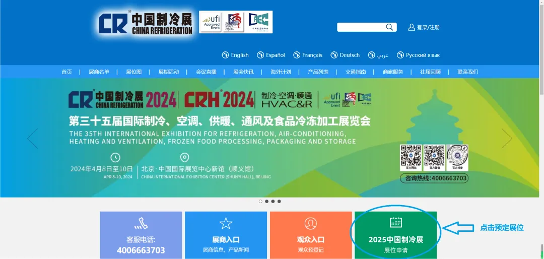 打开官网www.cr-expo.com,点击2025展位预定