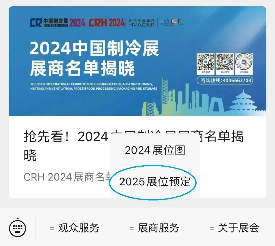↓↓↓ 点击“阅读原文”,预定2025中国制冷展展位
