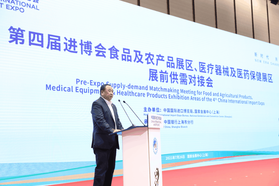 2021年7月26日,距离第四届进博会开幕倒计时100天之际,由中国国际进口博览局、国家会展中心(上海)主办,中国银行上海市分行承办的第四届进博会食品及农产品展区、医疗器械及医药保健展区展前供需对接会在国家会展中心(上海)举办,这是继消费品展区之后的第二场展前供需对接会。