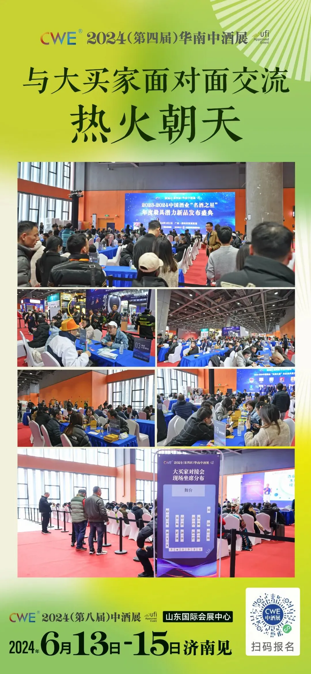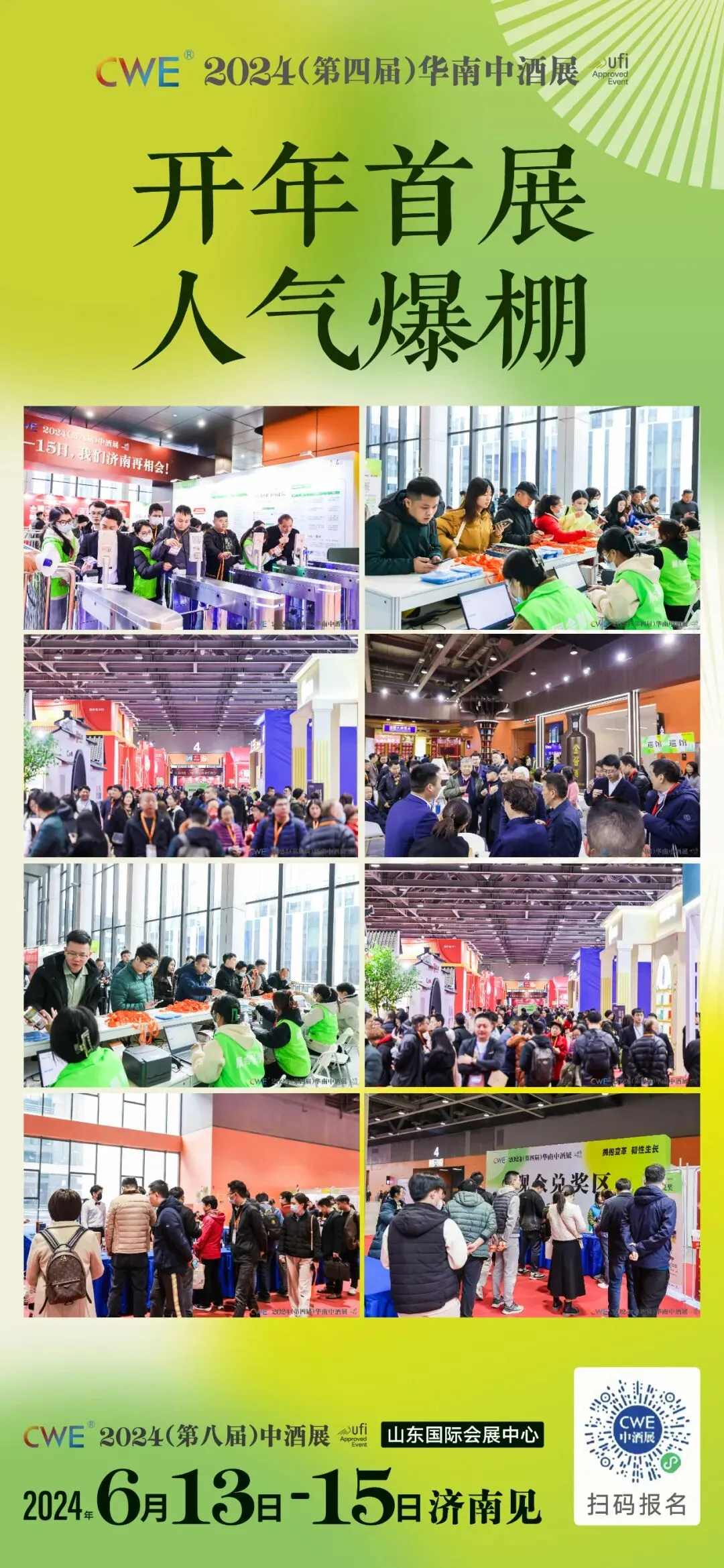 中酒展用一场热闹非凡的行业盛会,拉开了酒行业开年的序幕。接下来,中酒展将继续带领酒业人征战华东。6月13日-15日,2024(第八届)中酒展将在济南·山东国际会展中心举办,届时,12+品类、1600+展商、50000+户专业经销商,将齐聚110000平米展馆,一同开启2024年中酒业大型招商、选品、交流盛会。华南中酒展的热烈氛围也让行业人对这场规模更大的酒业年度盛会更加期待。企业更是抓紧时机抢定展位,展会现场喜报频传,展位预订火热进行中。