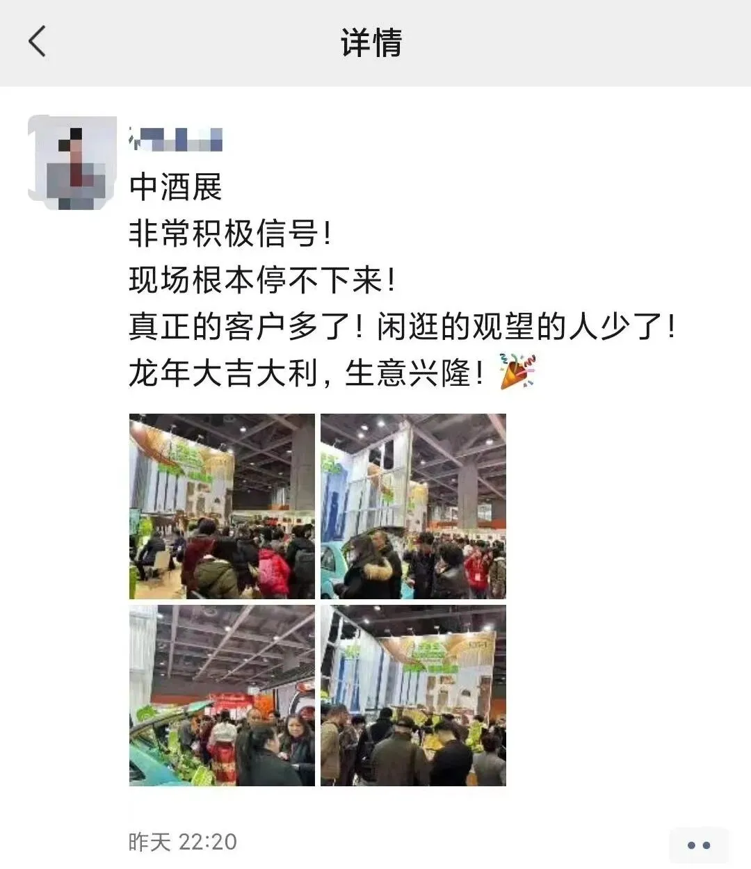 一场成功的展会,能够给奋进中的酒业人带来强大的信心。中酒展再次用超高的人气和活力为行业带来了惊喜。6月13日-15日,2024(第八届)中酒展,这场规模更大年度酒业盛会更加不容错过,展位预订正在火热预定中,欢迎企业来电咨询。