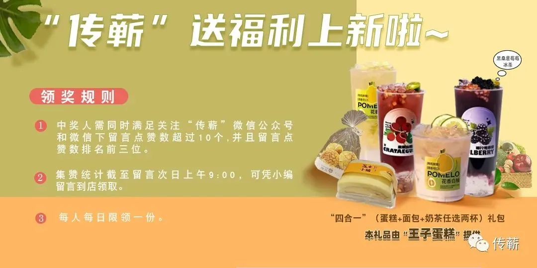 为回馈广大粉丝的支持与厚爱,传蕲福利大放送啦!凡在本篇稿件中,留言点赞数排名前3名的粉丝,将