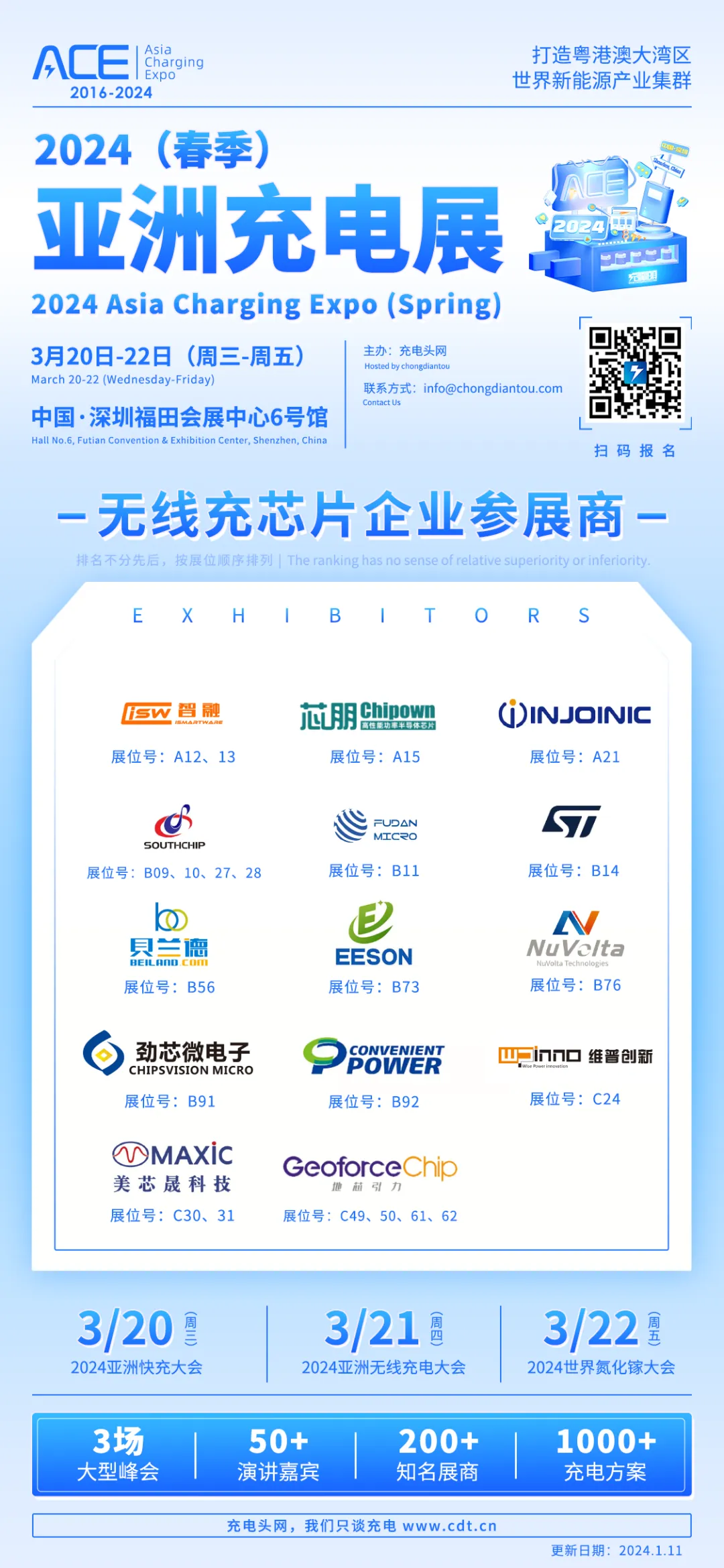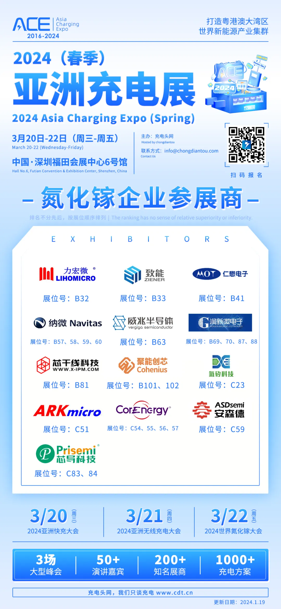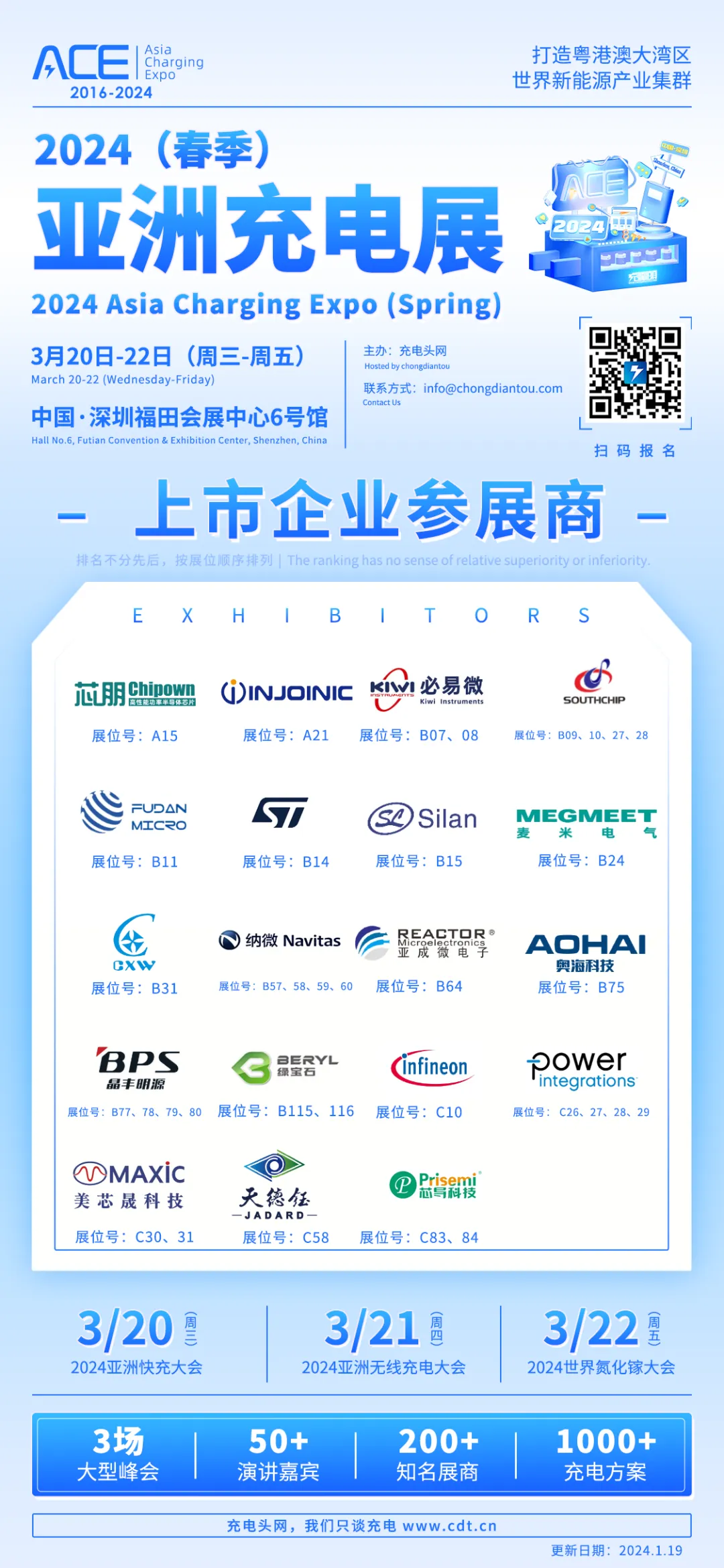 2024(春季)亚洲充电展将于3月20日-22日在深圳福田会展中心6号馆举办,目前已有143家知名充电行业企业报名参展。