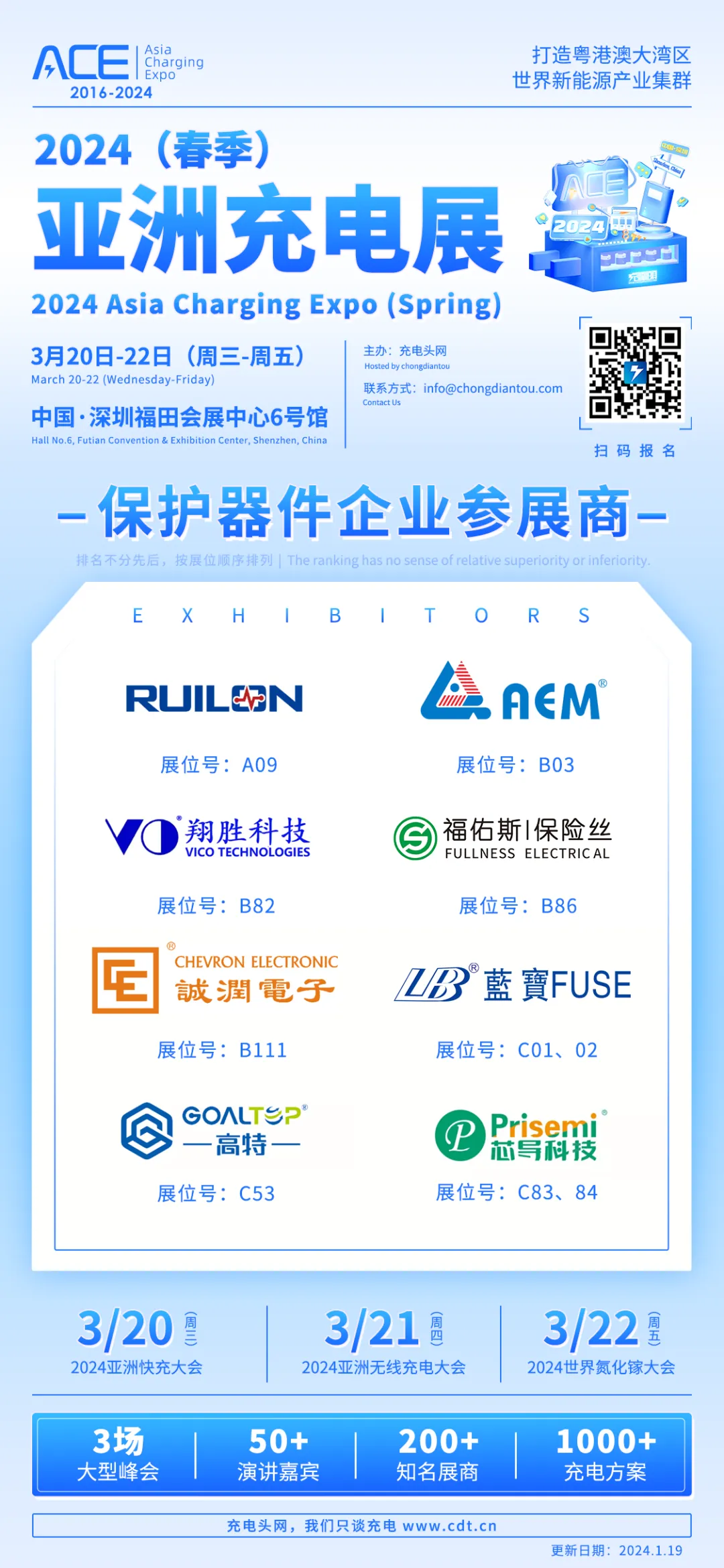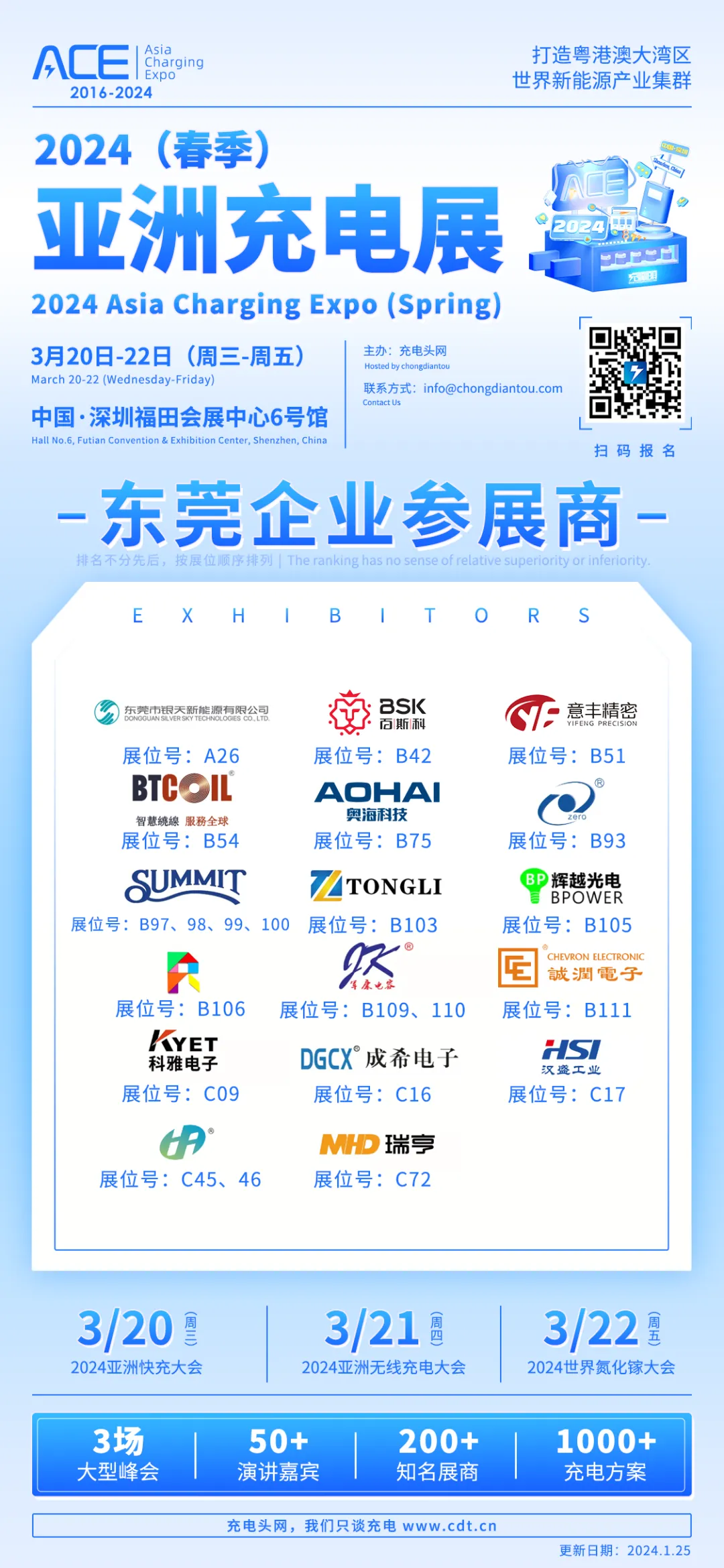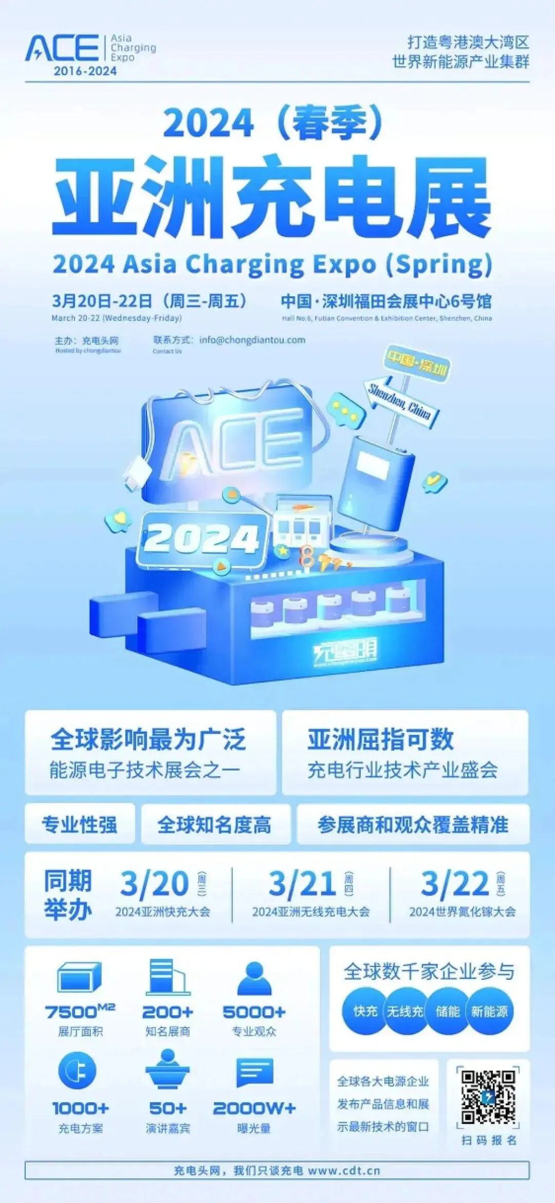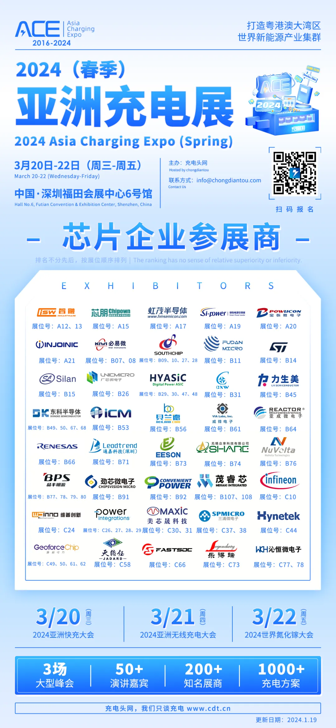 2024(春季)亚洲充电展将于3月20日-22日在深圳福田会展中心6号馆举办,目前已有143家知名充电行业企业报名参展。