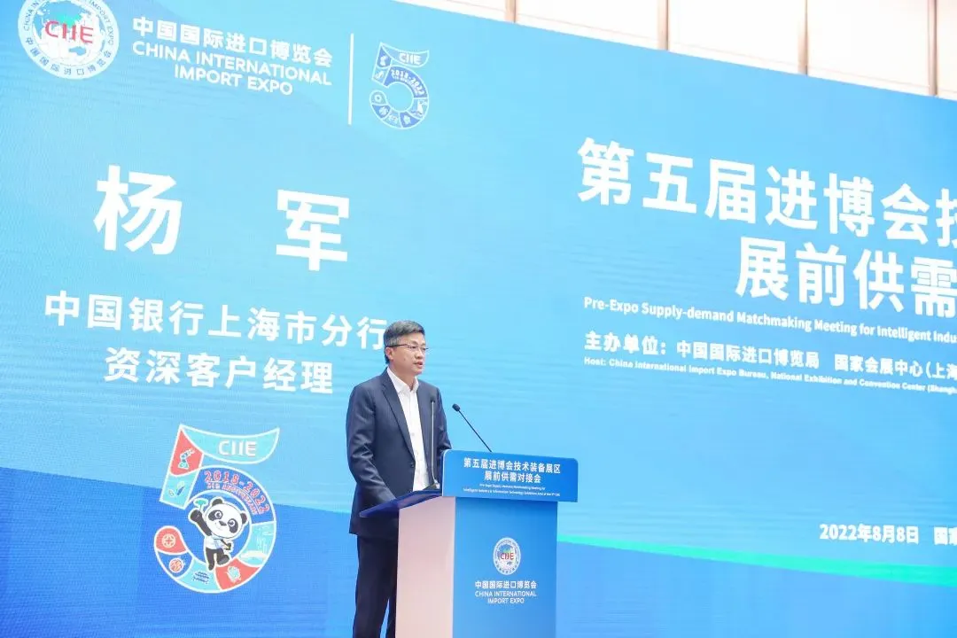 2022年8月8日,第五届进博会技术装备展区展前供需对接会在国家会展中心(上海)举办。本次活动由中国国际进口博览局、国家会展中心(上海)主办,中国银行上海市分行承办,以线上线下相结合的形式进行。NACHI、佳能、江森自控、旭化成、蒂森克虏伯、天田、住友电工、凯道起重设备、斯达拉格等30余家技术装备展区的参展商与中国石化、中海油、中国石油、国家电网、中国华能、国家电投、中天合创、庆华集团、中泰进出口、比亚迪、蔚来汽车等60余家中央企业及行业龙头企业参与对接。