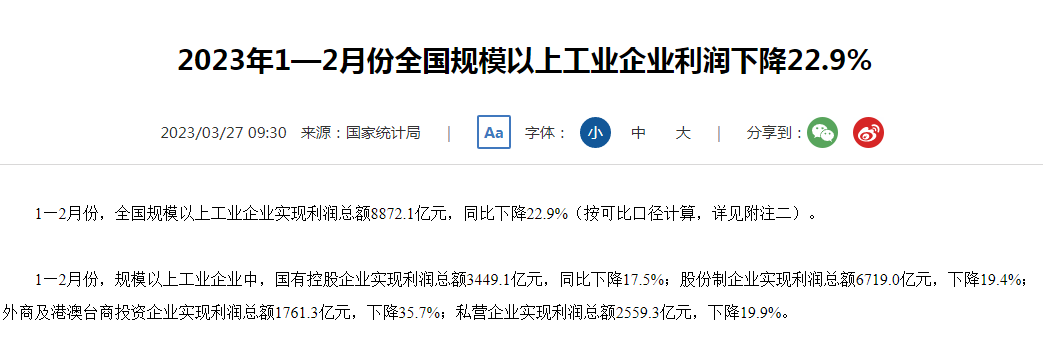 股份制企业实现利润总额6719.0亿元,下降19.4%;