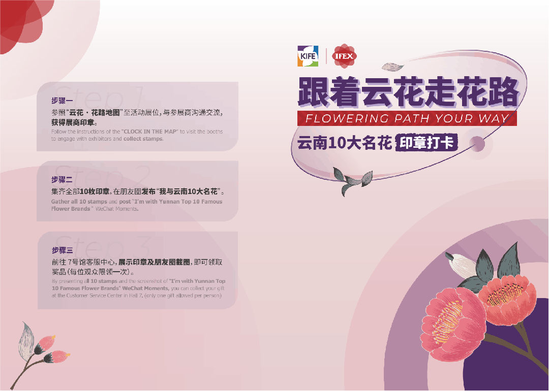 活动结束后,我们将以私信时间作为评定标准,对获奖者进行回复。获奖者可于花展开幕当日(9月15日),前往现场(昆明滇池国际会展中心)领取门票和集章手册(具体位置详见私信回复,朋友圈信息请保留至当天)。