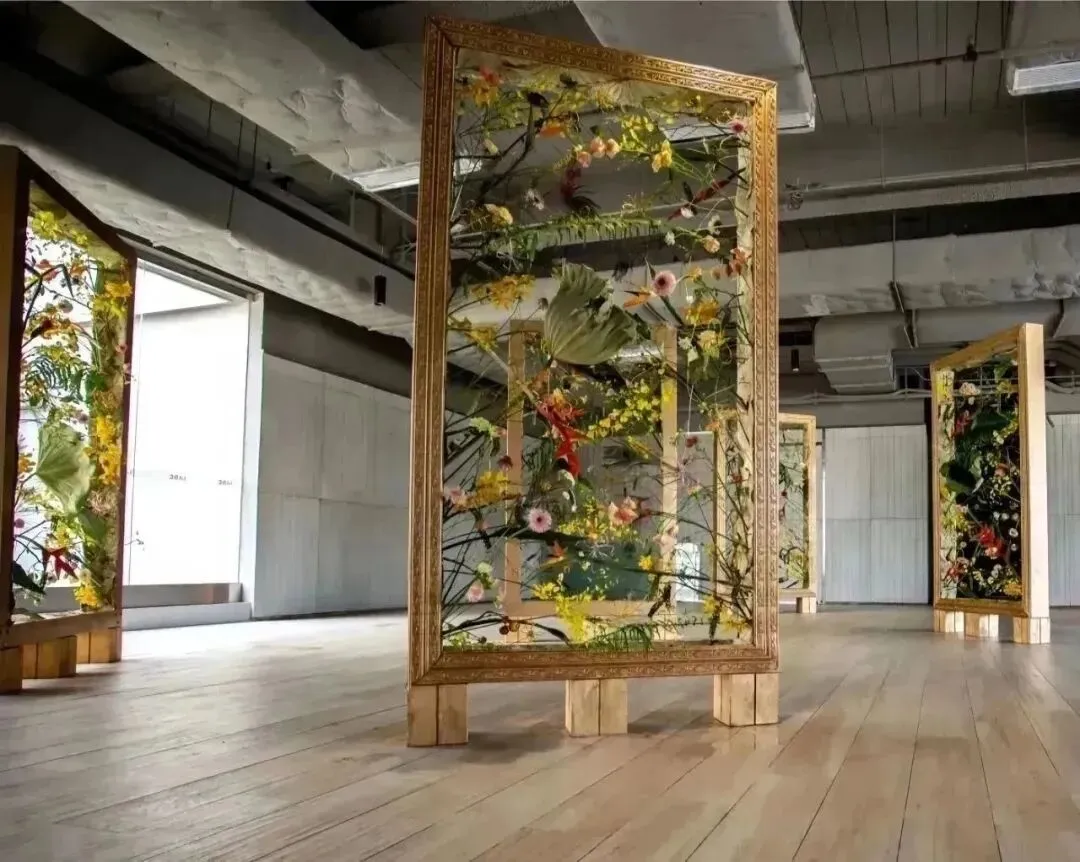 在云南花卉育种成果转化展示区,立体花艺画框形成缤纷之林,游走漫步于其中,惬意至极。